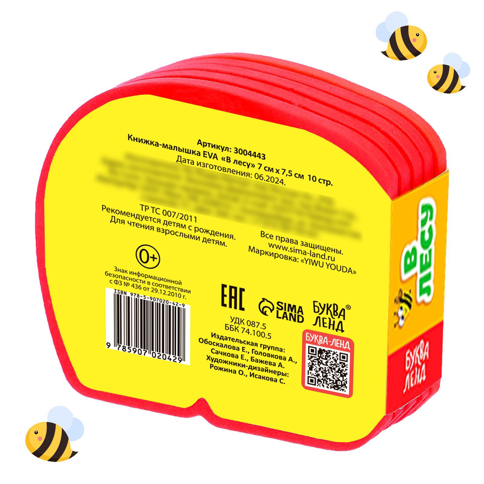 Мягкая книжка-малышка EVA "В лесу", 10 стр., 2.5x7x7.5 см., БУКВА-ЛЕНД, Китай