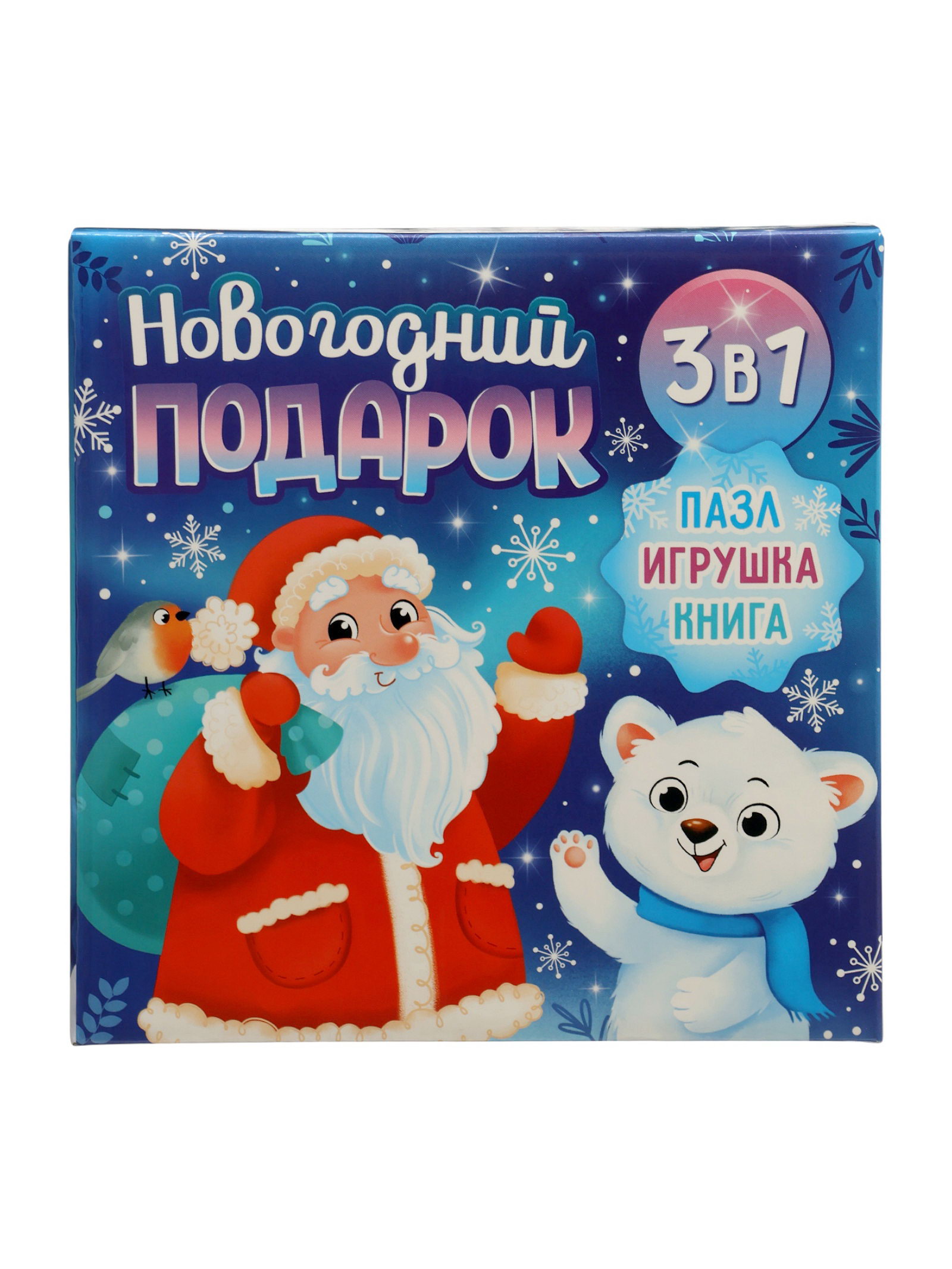 Подарочный набор на новый год с игрушкой "Мишка", 3 в 1, книга и пазл, МИКС, 6x15.5x15.5 см., БУКВА-ЛЕНД, Китай