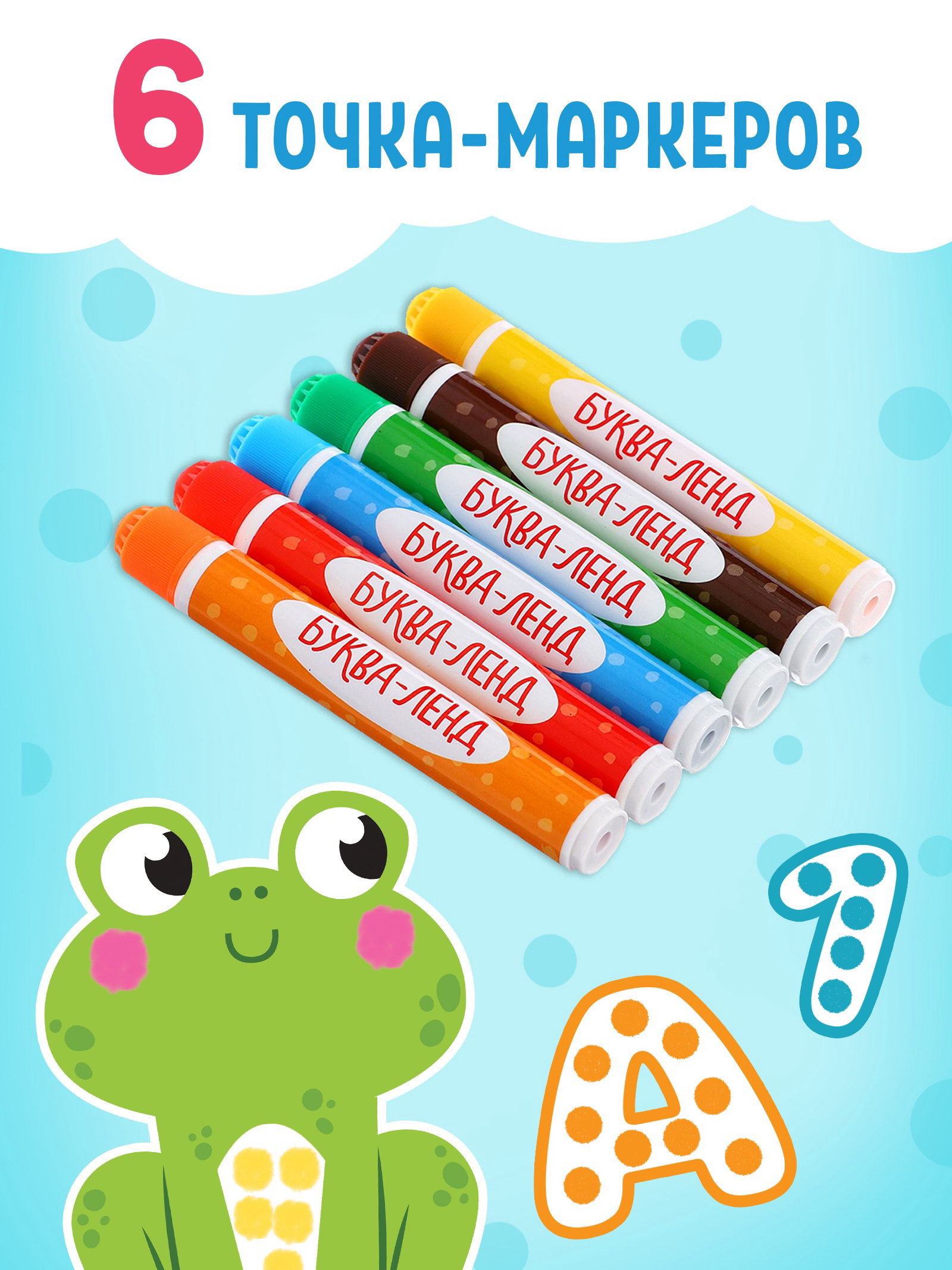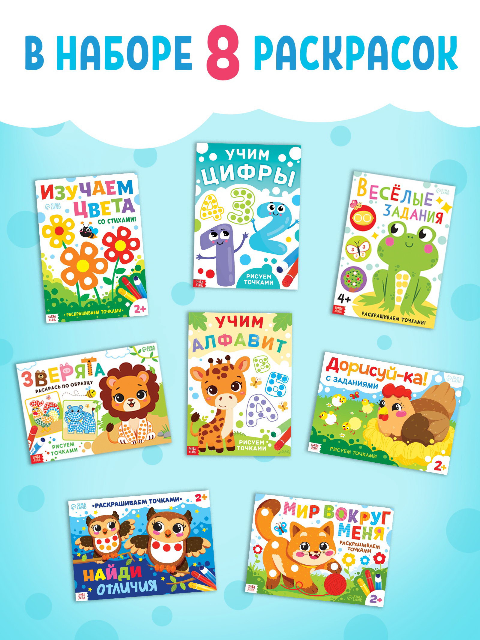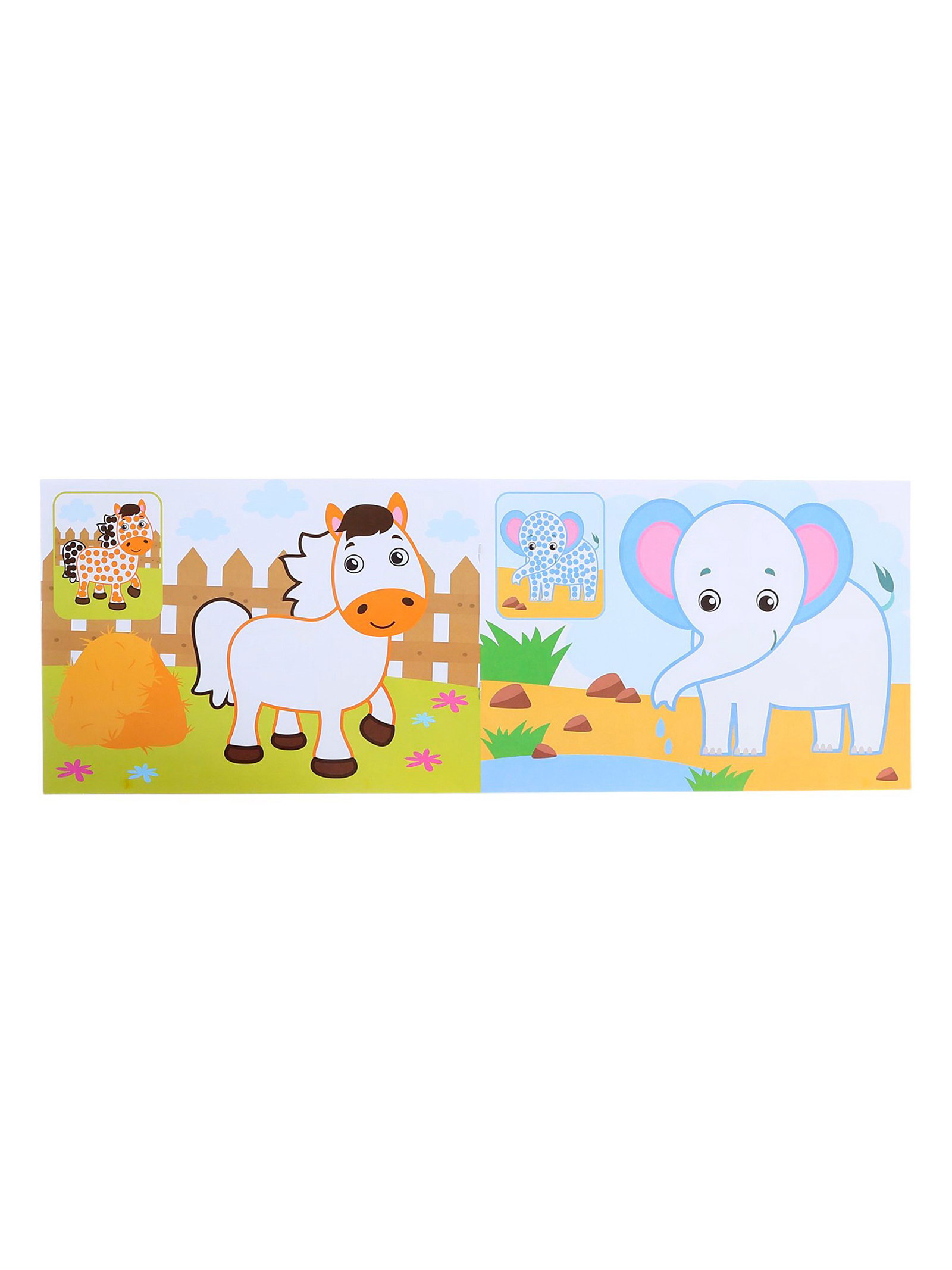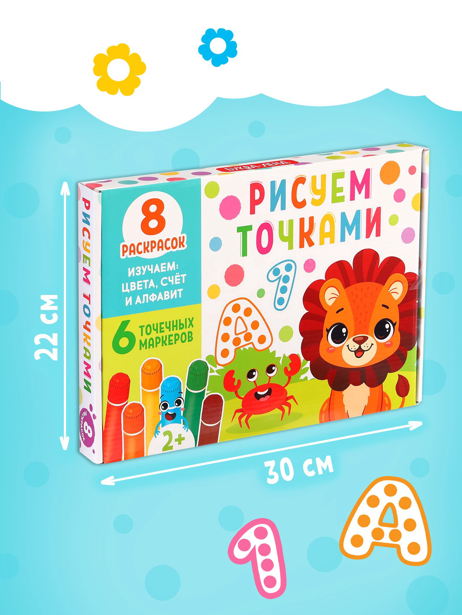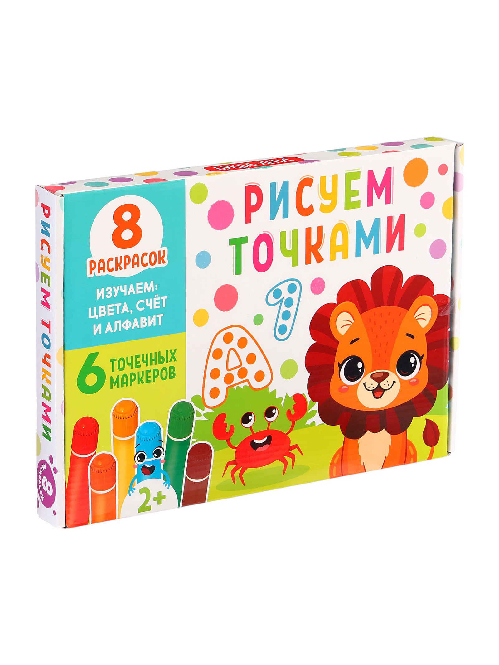 Раскраски набор "Рисуем точками", 6 точка - маркеров, 8 раскрасок, 22x30x4 см., БУКВА-ЛЕНД, Китай