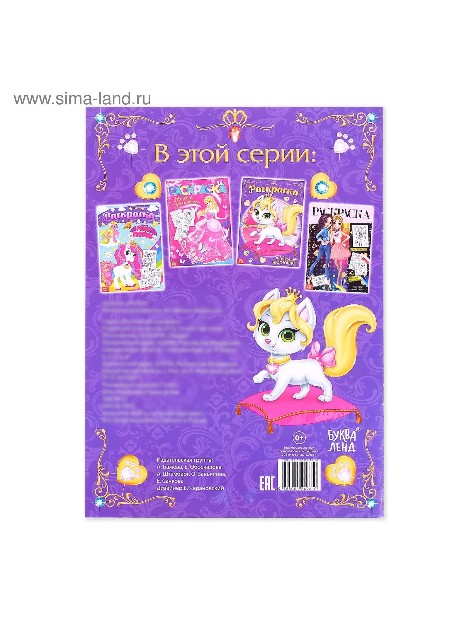 Раскраска для девочек "Милые зверюшки", А4, 0.2x21x30 см., БУКВА-ЛЕНД, Россия