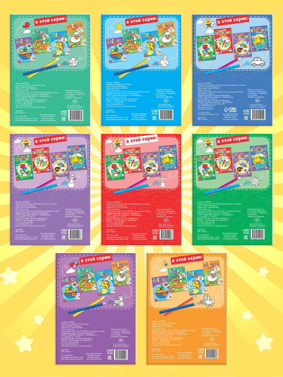 Раскраски для малышей со стихами, набор, 8 шт. по 12 стр., 1x15x21 см., БУКВА-ЛЕНД, Россия