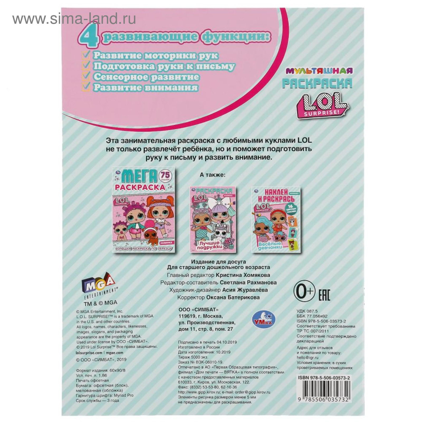 Раскраска "Лол", формат А4, 16 стр., 21.4x29 см., Умка, Россия
