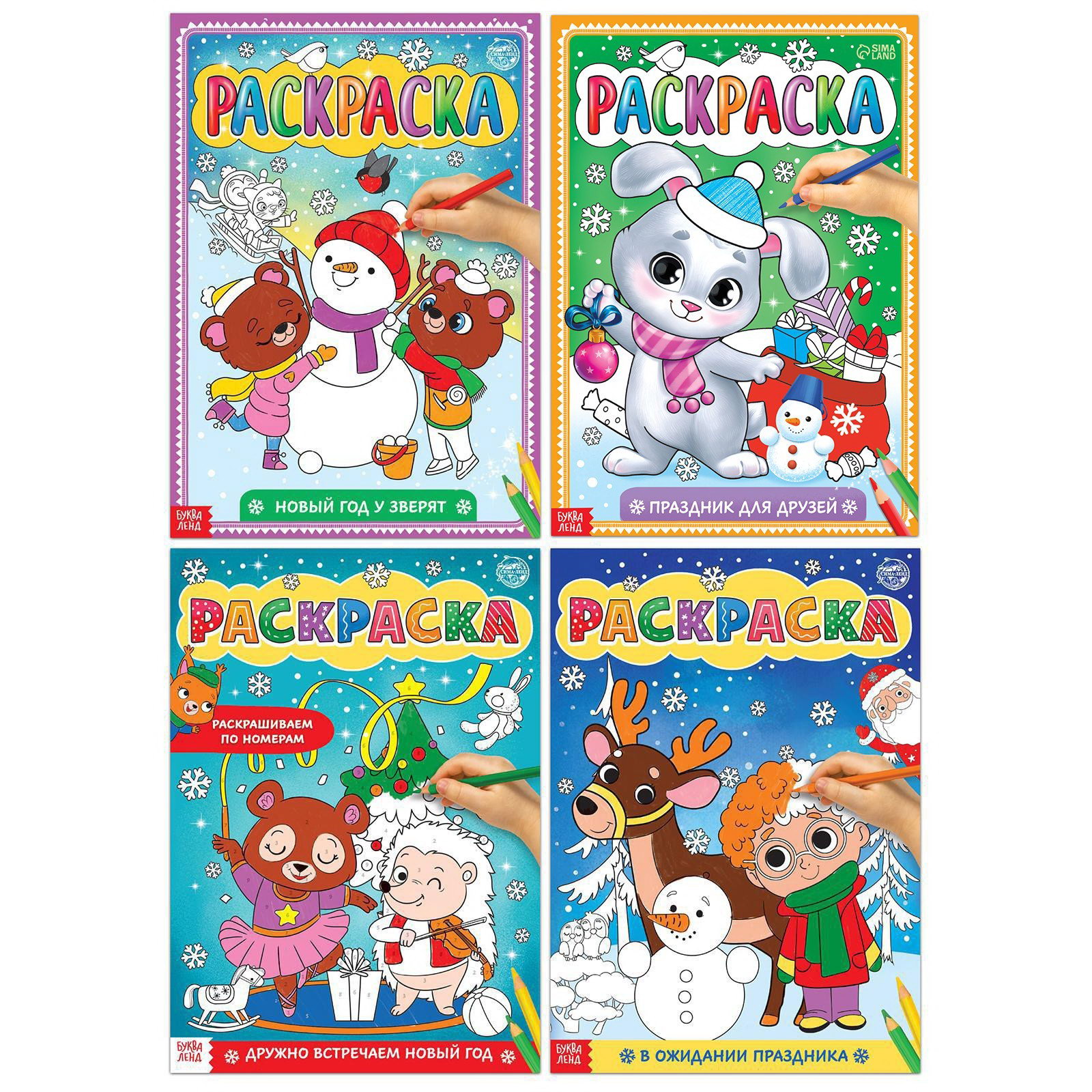Новогодние раскраски "Любимый Новый год", набор 4 шт. по 16 стр., формат А4, 0.3x30x21 см., БУКВА-ЛЕНД, Россия