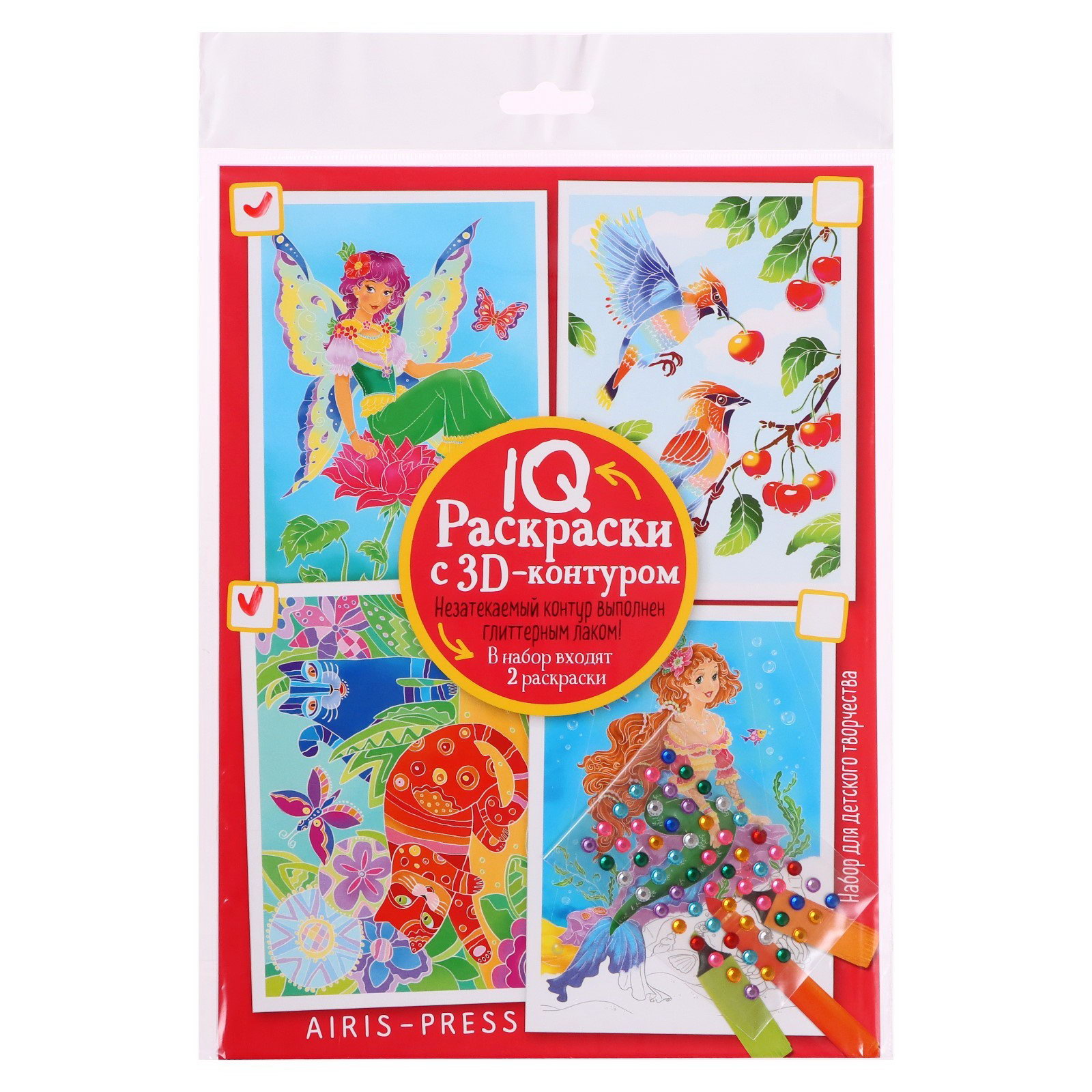 IQ Раскраски 3D контур. Набор 3 мини Разноцветный микс, Айрис-пресс, Россия