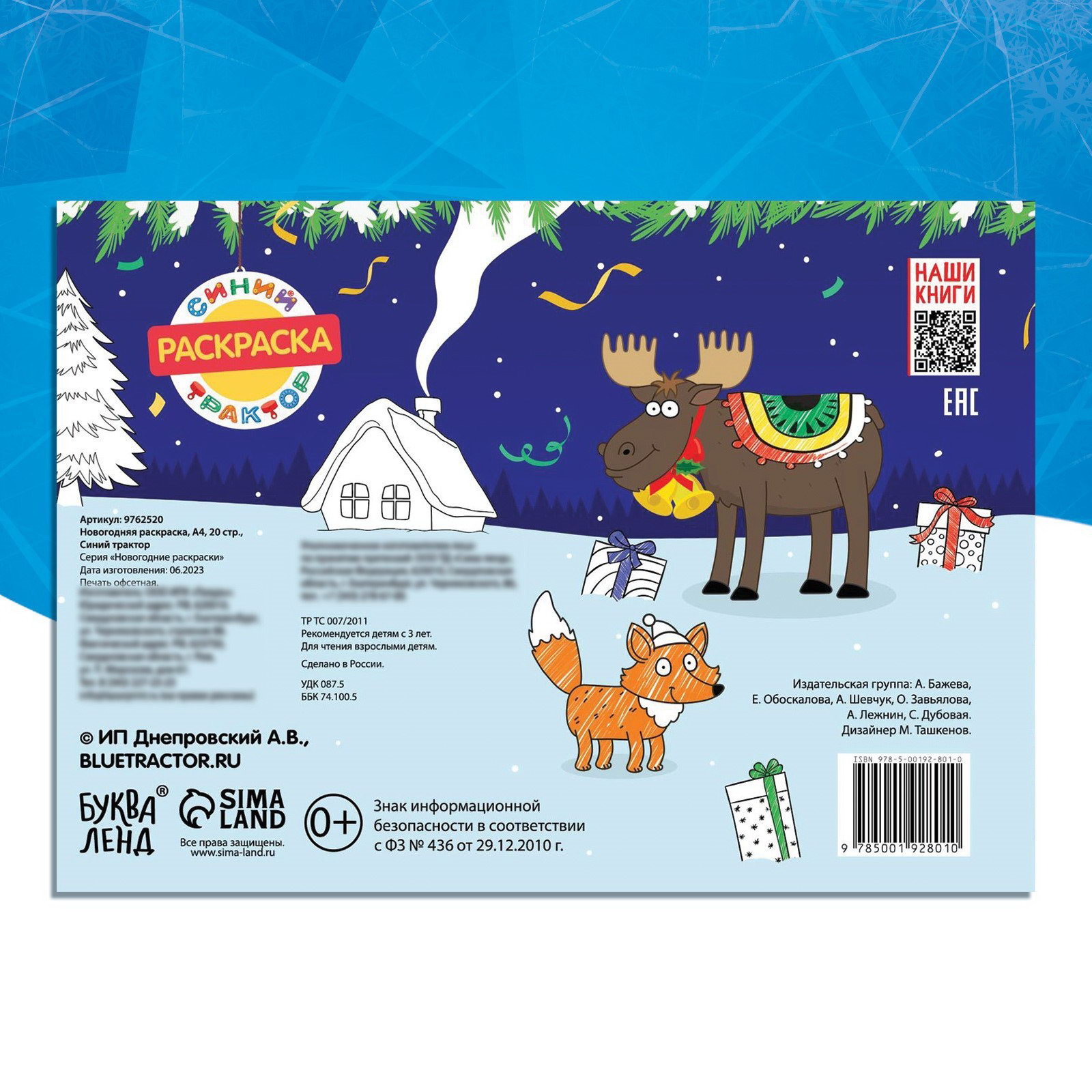 Новогодняя раскраска, А4, 20 стр., Синий трактор, Россия