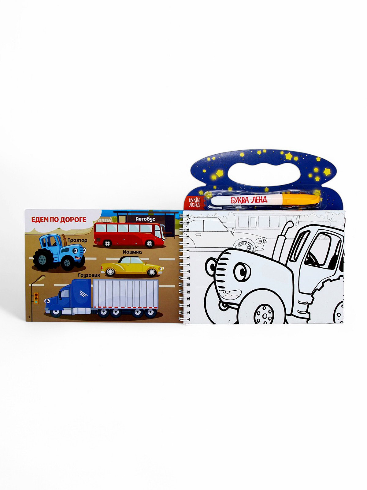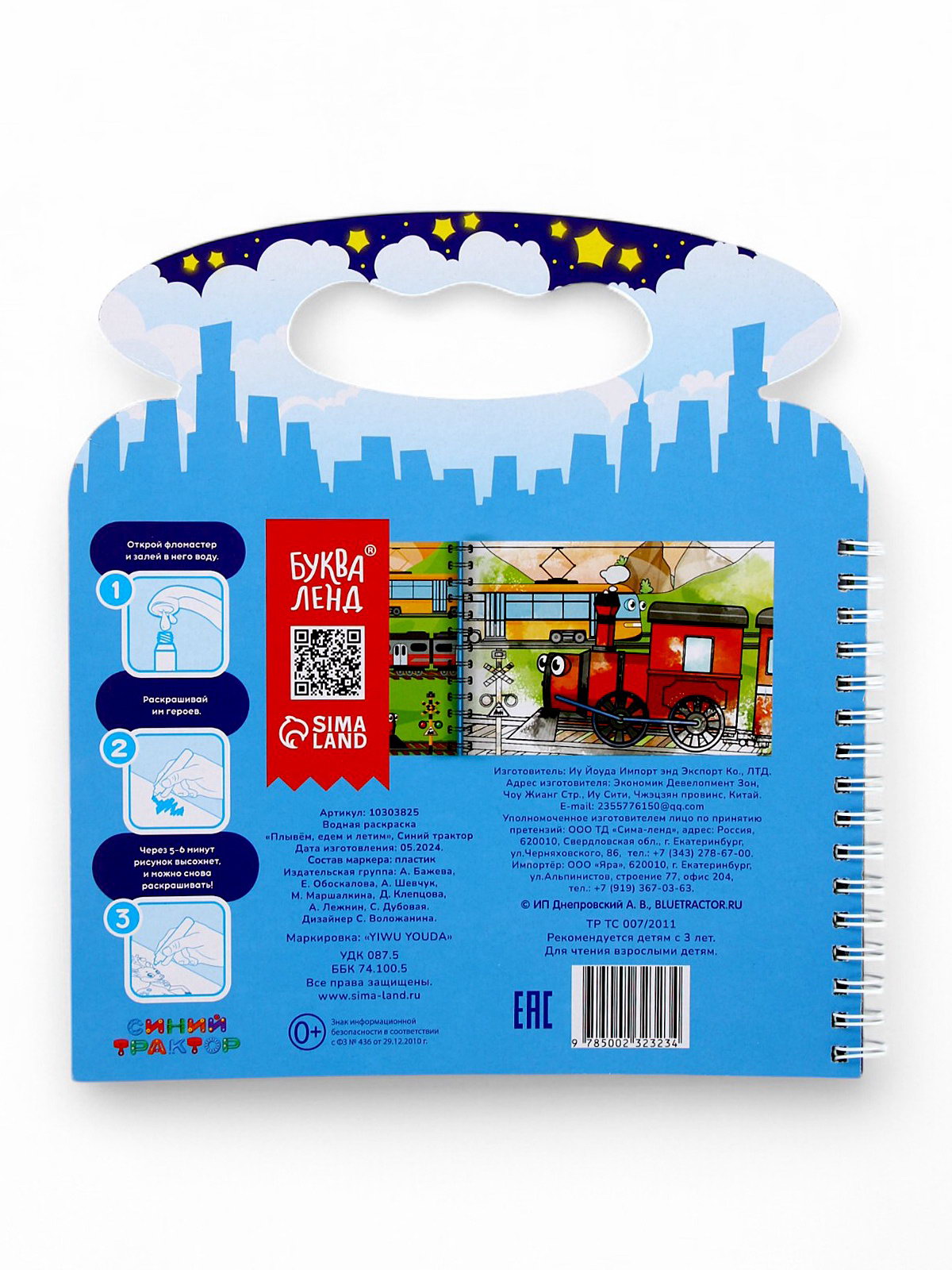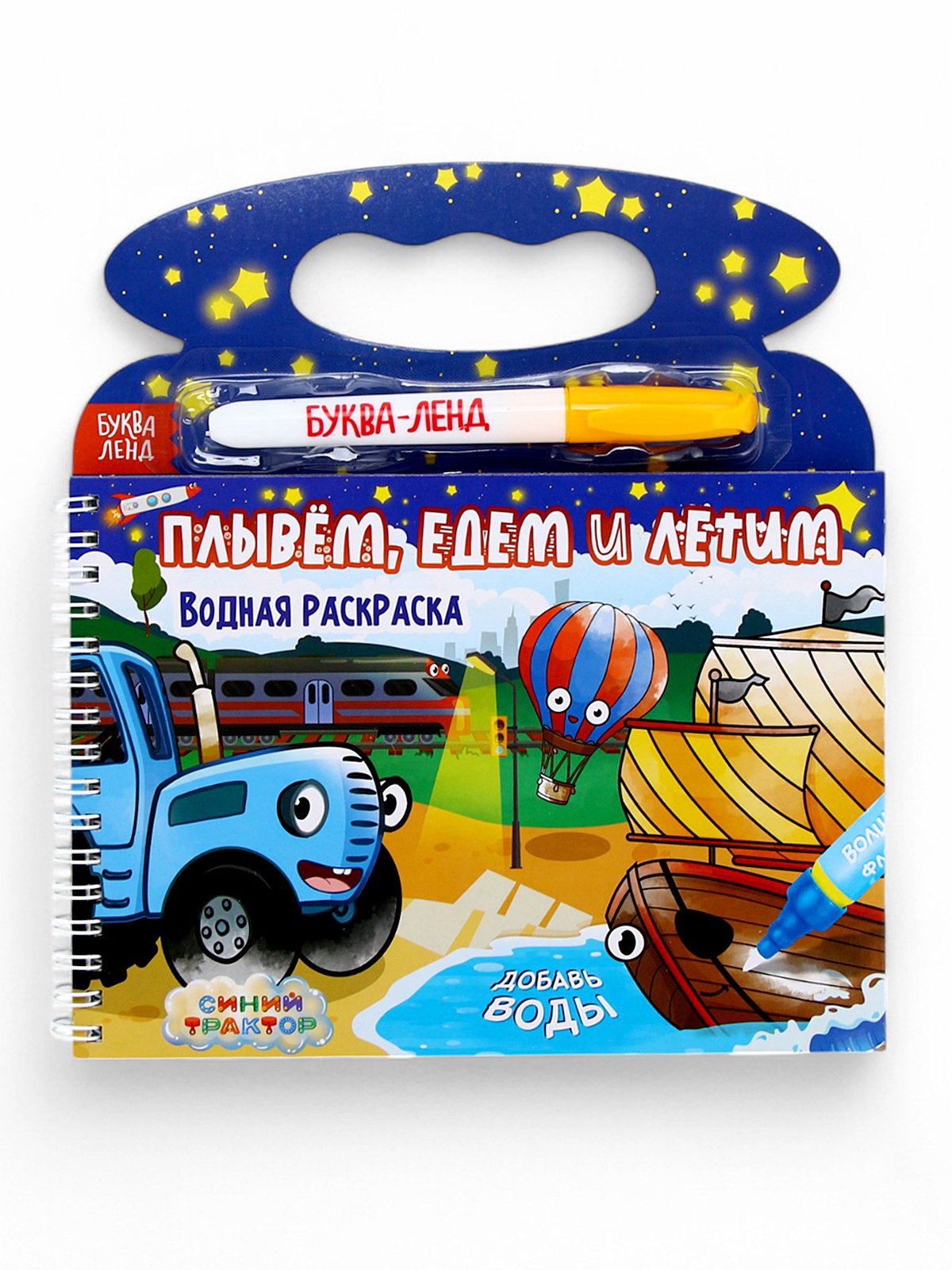 Водная раскраска "Плывём, едем и летим", с маркером, многоразовая, 15x25x1 см., Синий трактор, Китай