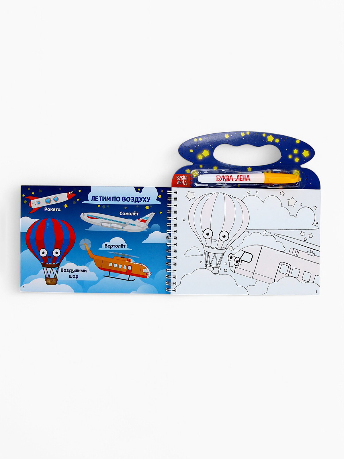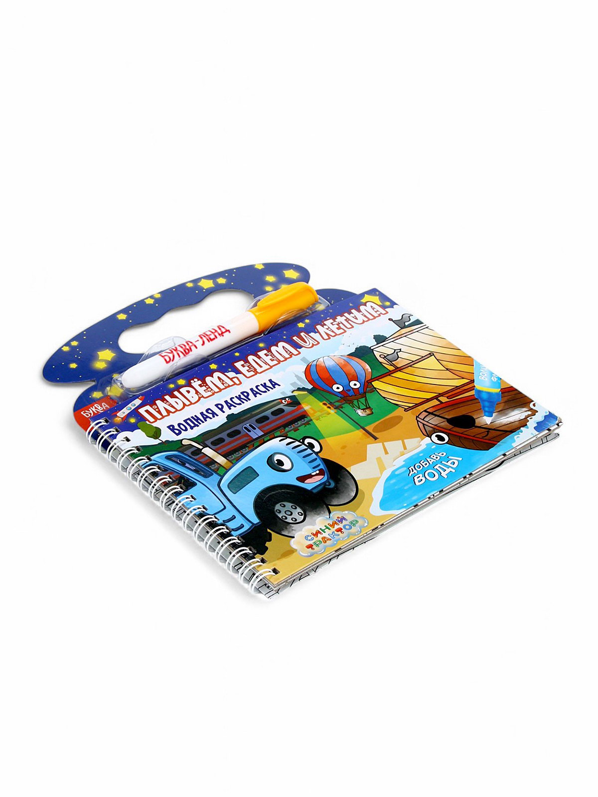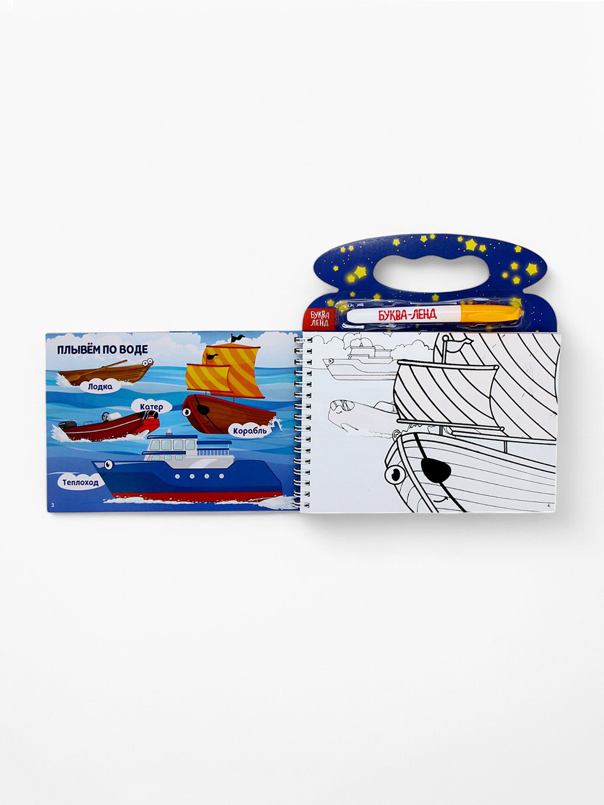 Водная раскраска "Плывём, едем и летим", с маркером, многоразовая, 15x25x1 см., Синий трактор, Китай