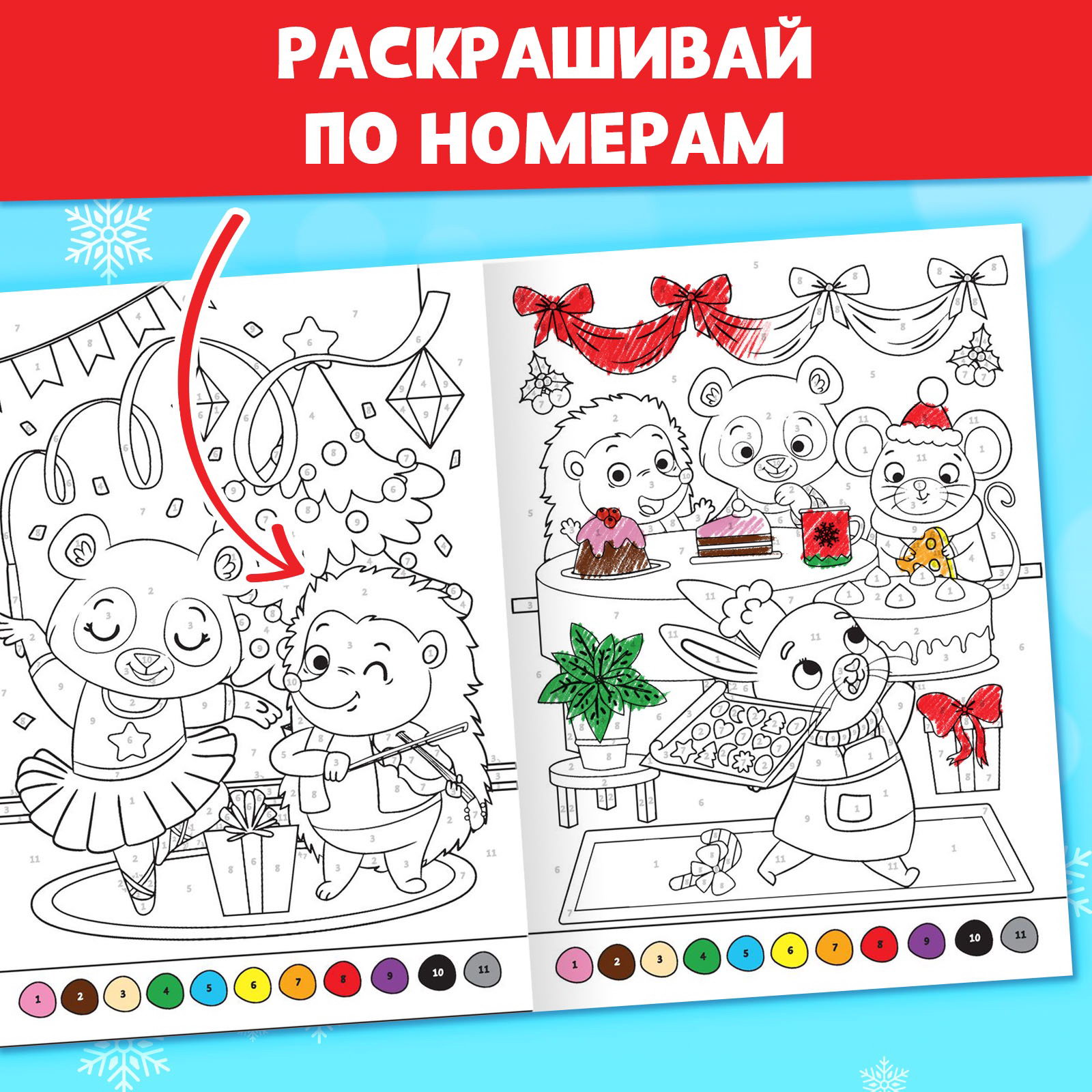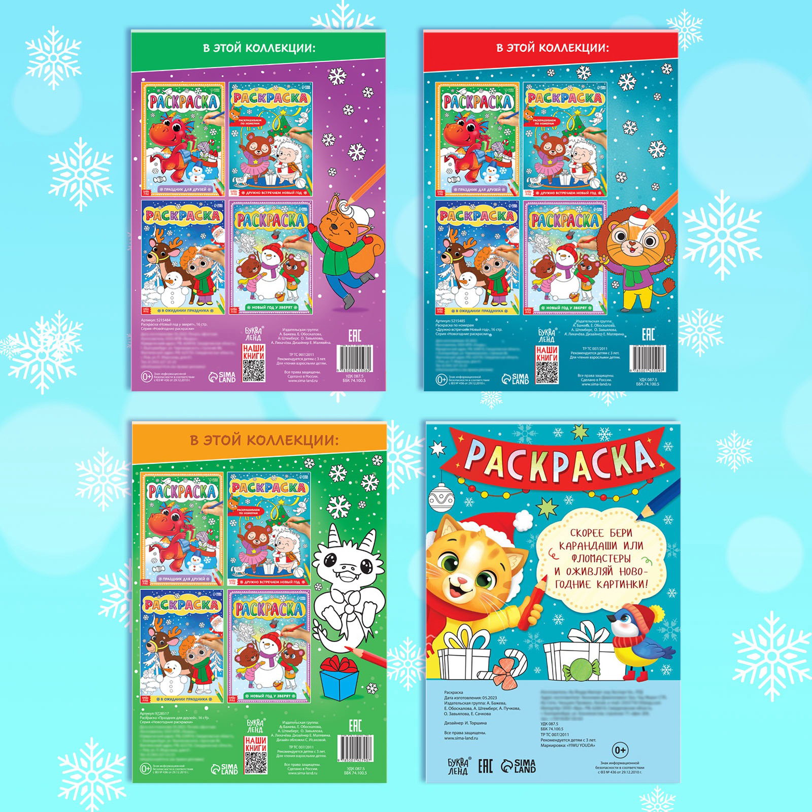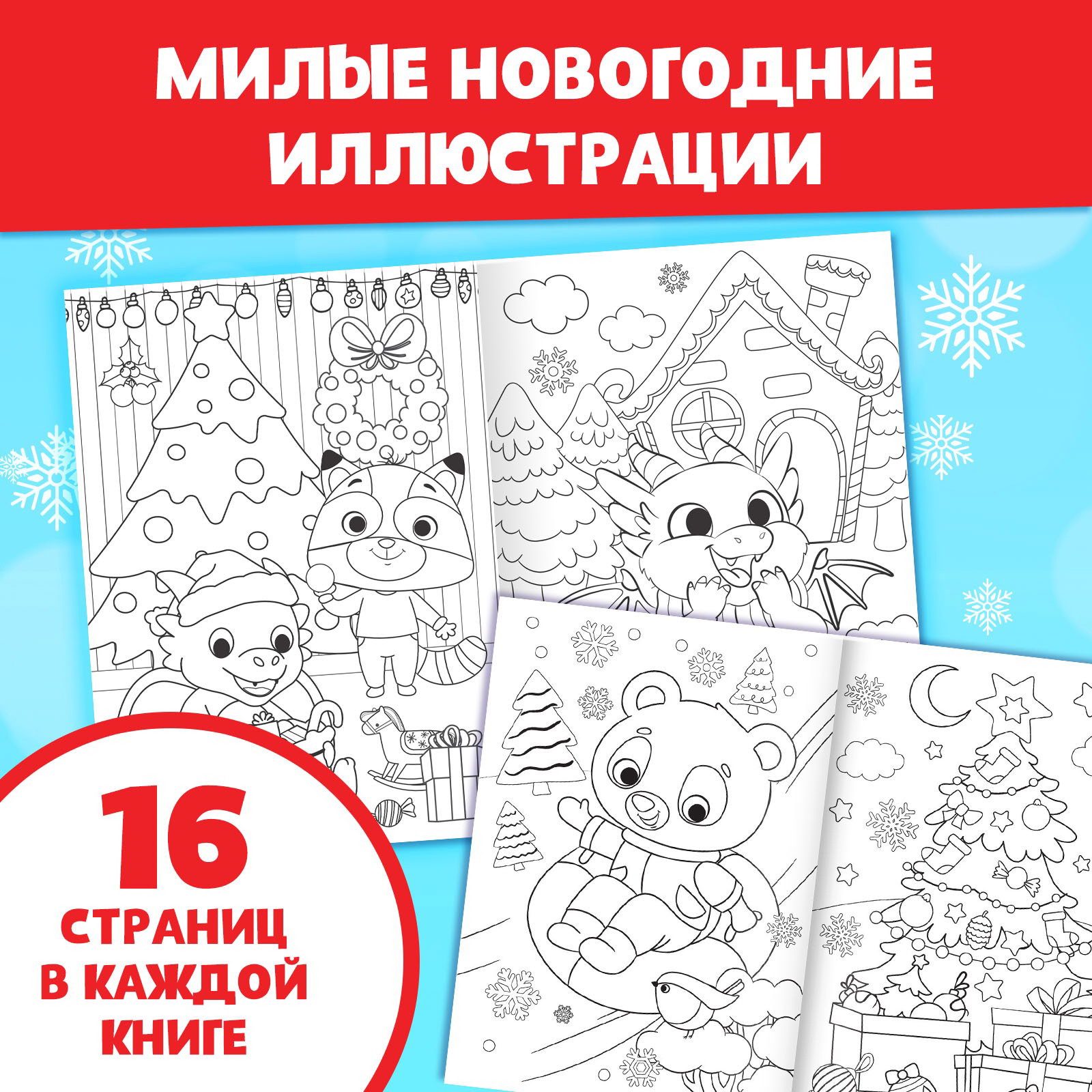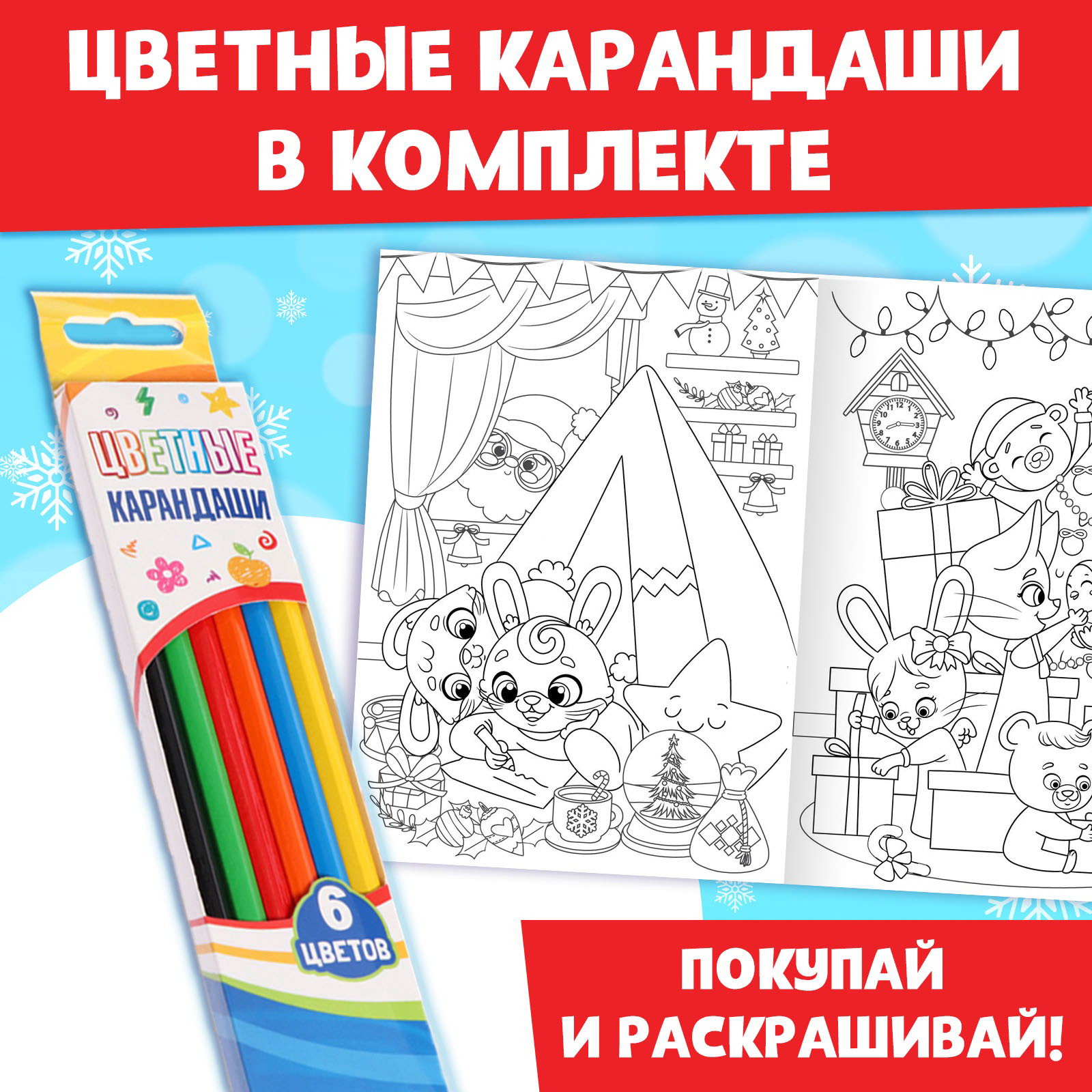 Раскраски новогодние набор "Праздник", с карандашами 6 цветов, 4 шт. по 16 стр., БУКВА-ЛЕНД, Россия