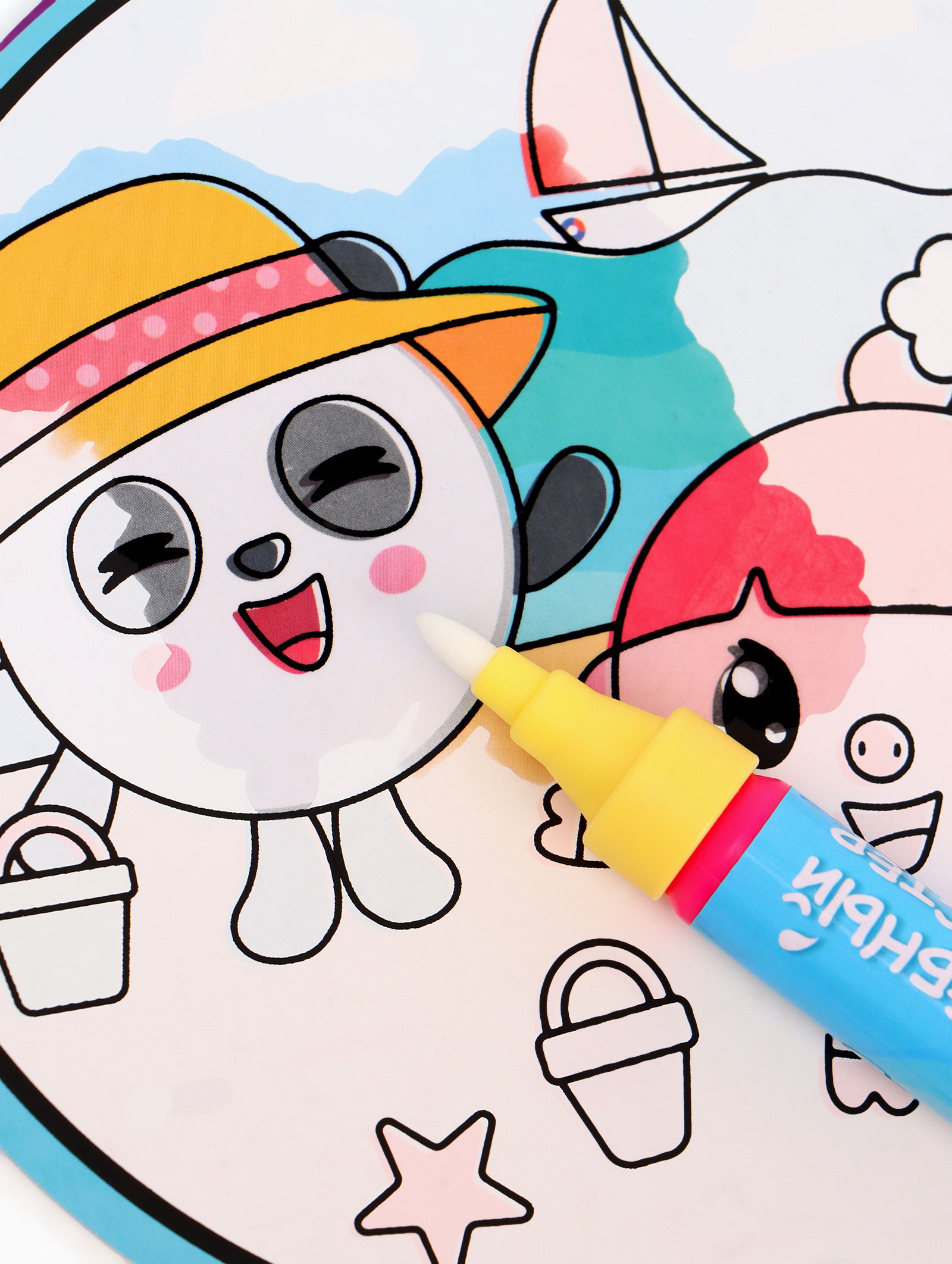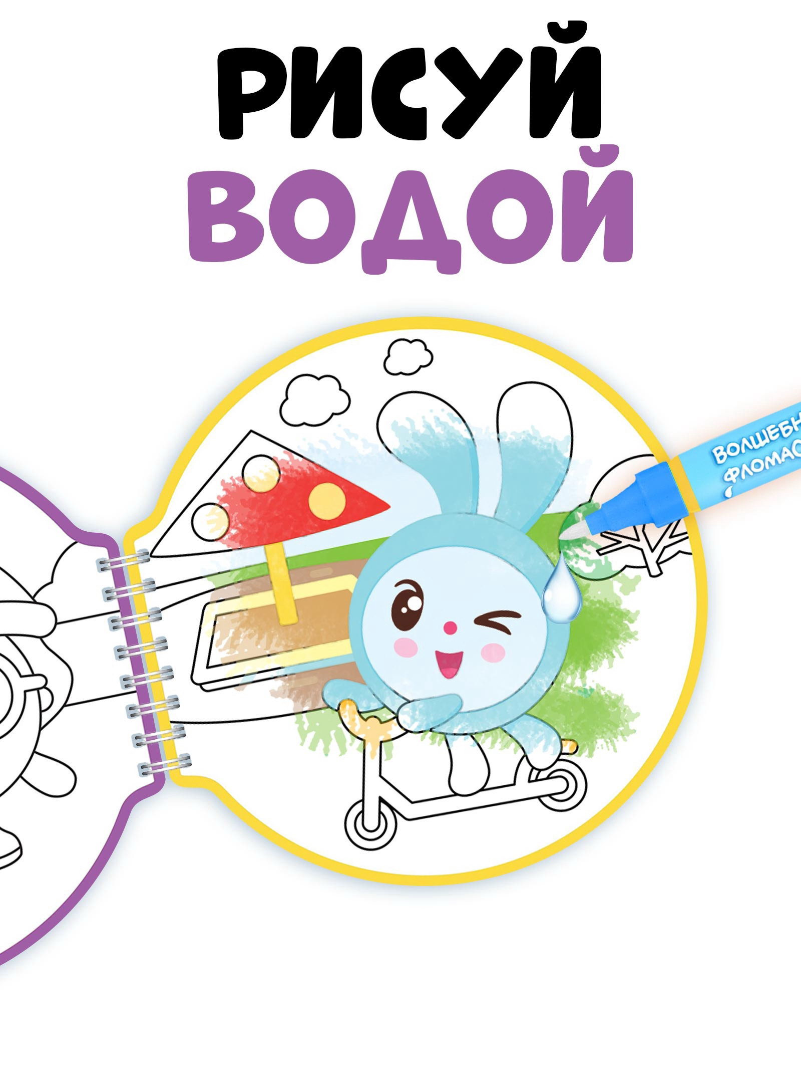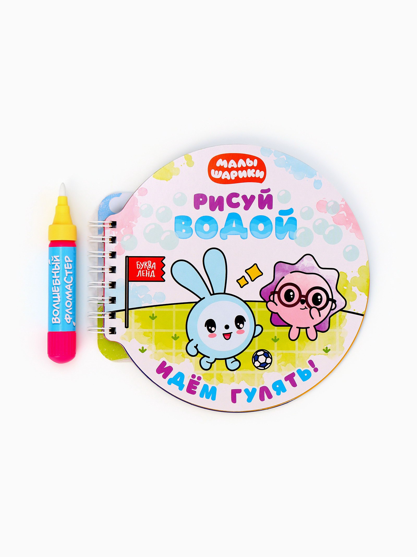 Раскраска многоразовая "Рисуй водой. Идём гулять!", 10 стр., маркер, 18x18x2.5 см., Малышарики, Китай