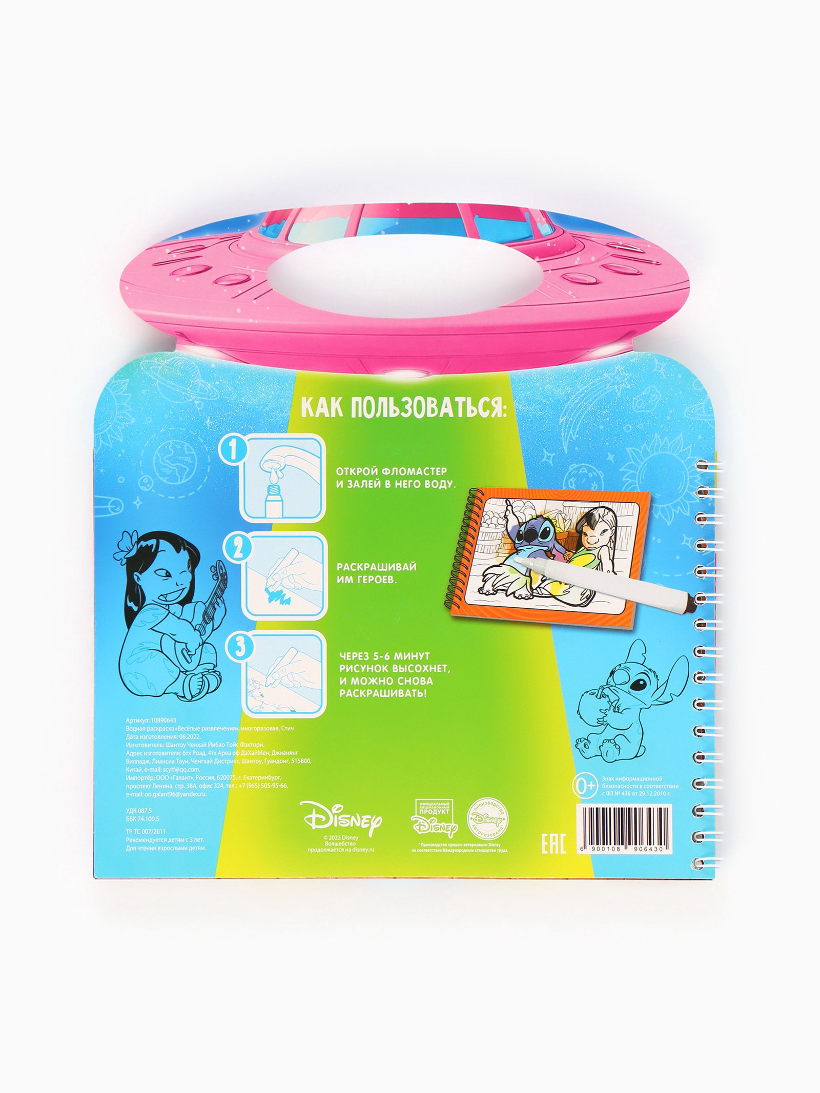 Творчество без следов Рисование водой помогает ребёнку развивать мелкую моторику, воображение и внимание к деталям. Каждая страница оживает под воздействием воды, а через несколько минут высыхает, позволяя начать заново. Любимые герои "Стича" делают процесс ещё более увлекательным. Это напоминает маленький театр, где каждое движение маркера создаёт новую историю. Как играть