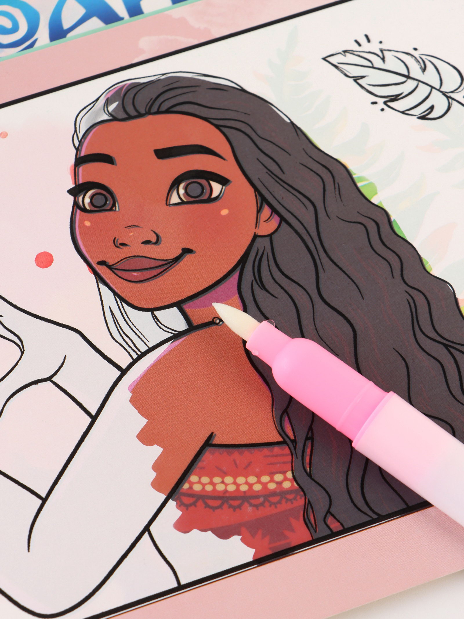 Творчество без следов Рисование водой помогает ребёнку развивать мелкую моторику, воображение и внимание к деталям. Каждая страница оживает под воздействием воды, а через несколько минут высыхает, позволяя начать заново. Любимые герои "Моаны" делают процесс ещё более увлекательным. Это напоминает маленький театр, где каждое движение маркера создаёт новую историю. Как играть
