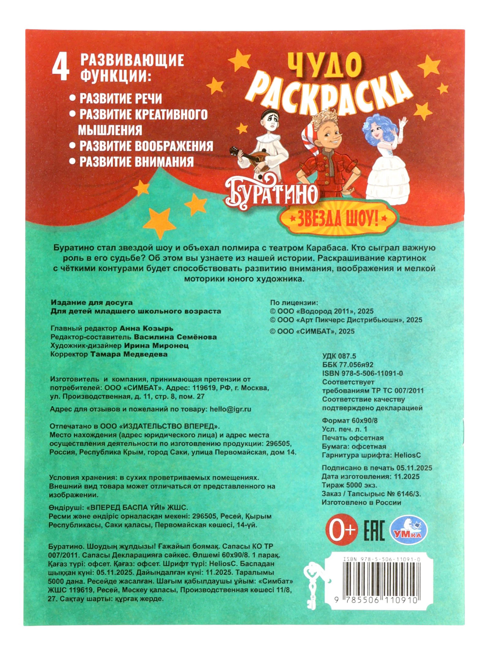 Чудо - раскраска "Буратино. Звезда шоу!", 8 стр., Умка, Россия