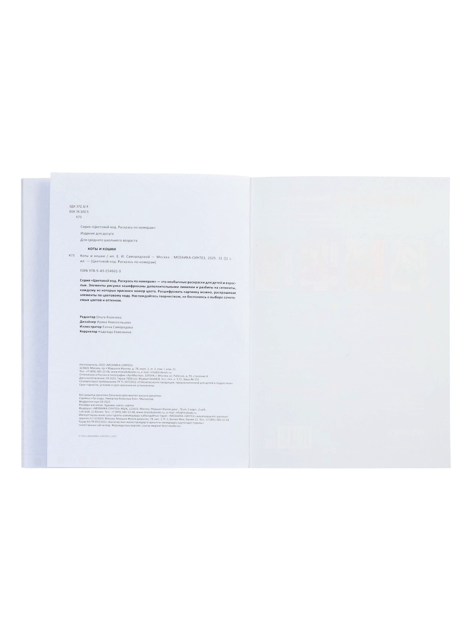 Размер упаковки: 20.5 x 0.5 x 28 см. tnved: 4901990000 Температурное ограничение: Нет Набор: Нет Комплектация набора: Без комплектации Количество страниц: 32 Возраст: От 6 лет Изображение: Животные Вид раскраски: По номерам Формат: А4- Эта раскраска превращает каждого, даже самого неуверенного в своих художественных силах, в настоящего художника. Всё просто: смотришь на цифру, находишь нужный цвет и получаешь готовую картинку с милыми котами и грациозными кошками. Никакого стресса, только удовольствие от процесса и гордость за результат. Почему взрослые и дети выбирают эту раскраску: