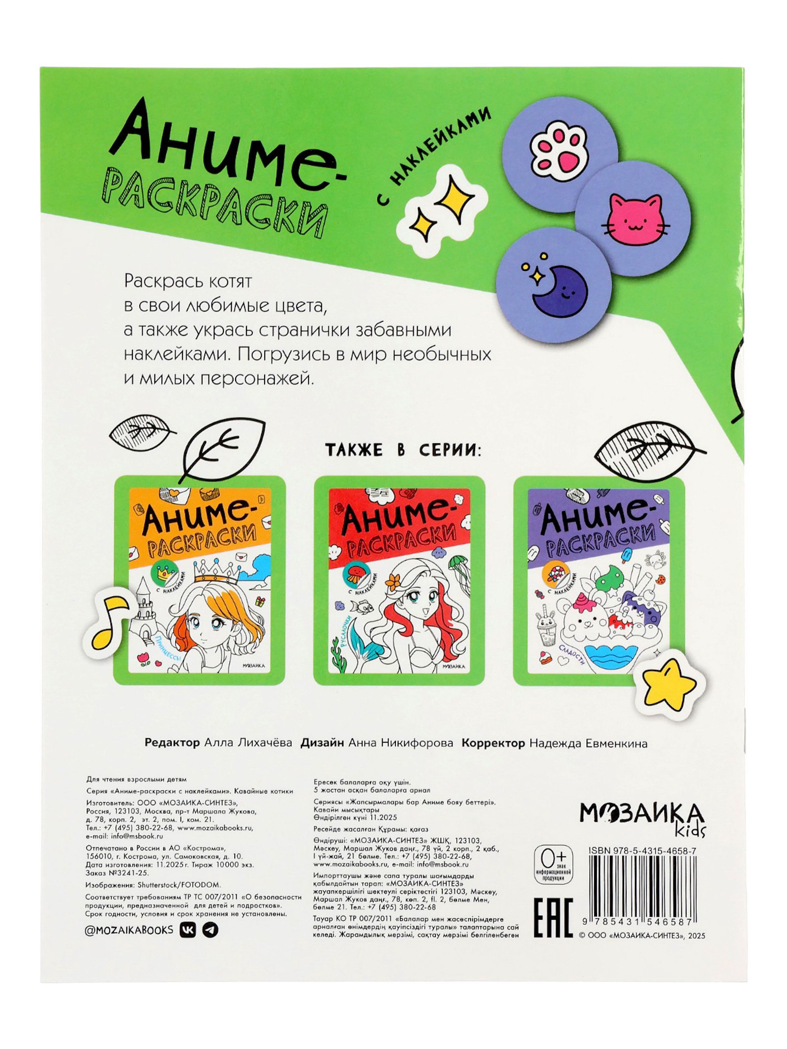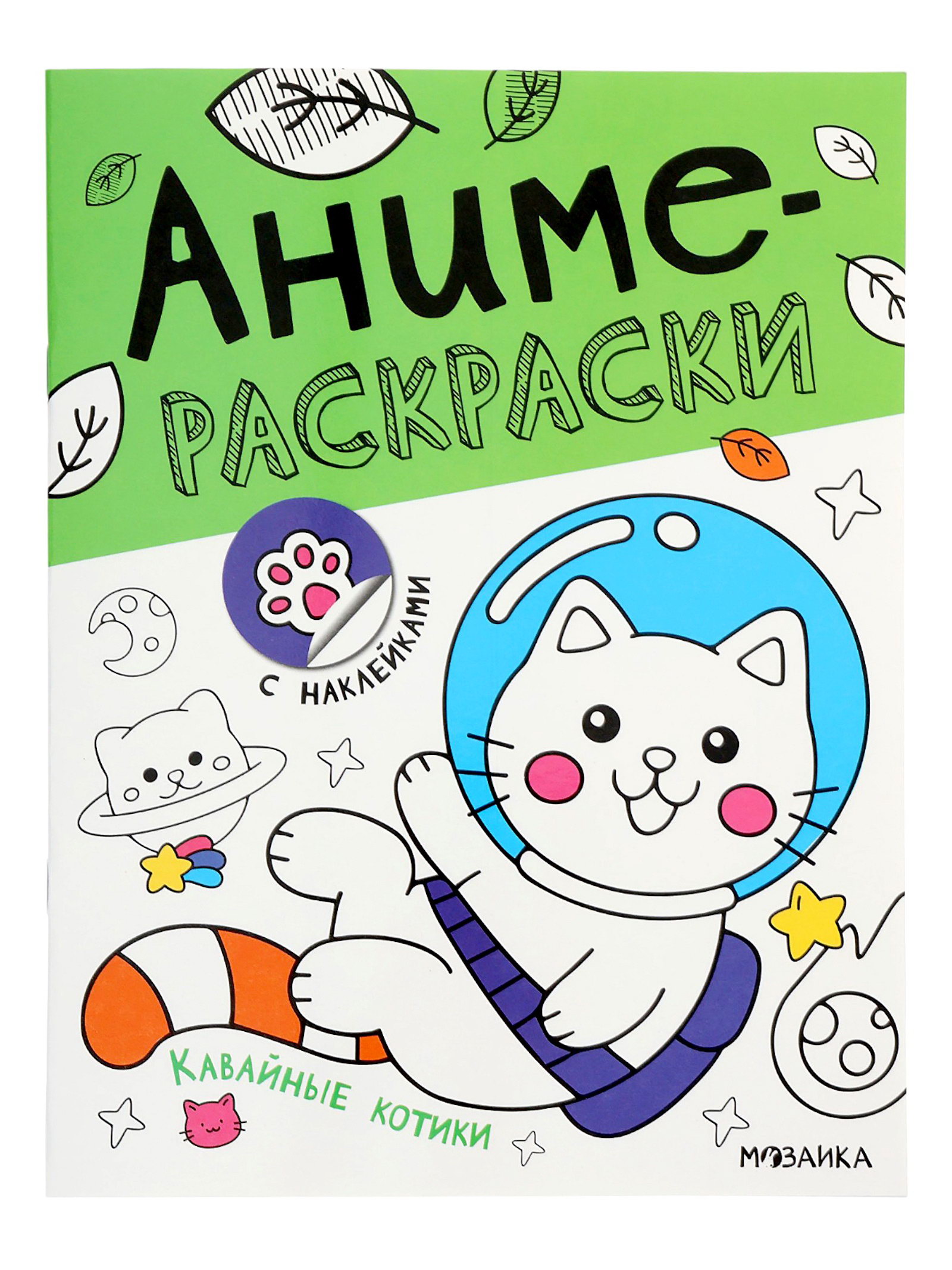 Аниме - раскраски с наклейками "Кавайные котики", 8 стр., МОЗАИКА-СИНТЕЗ, Россия