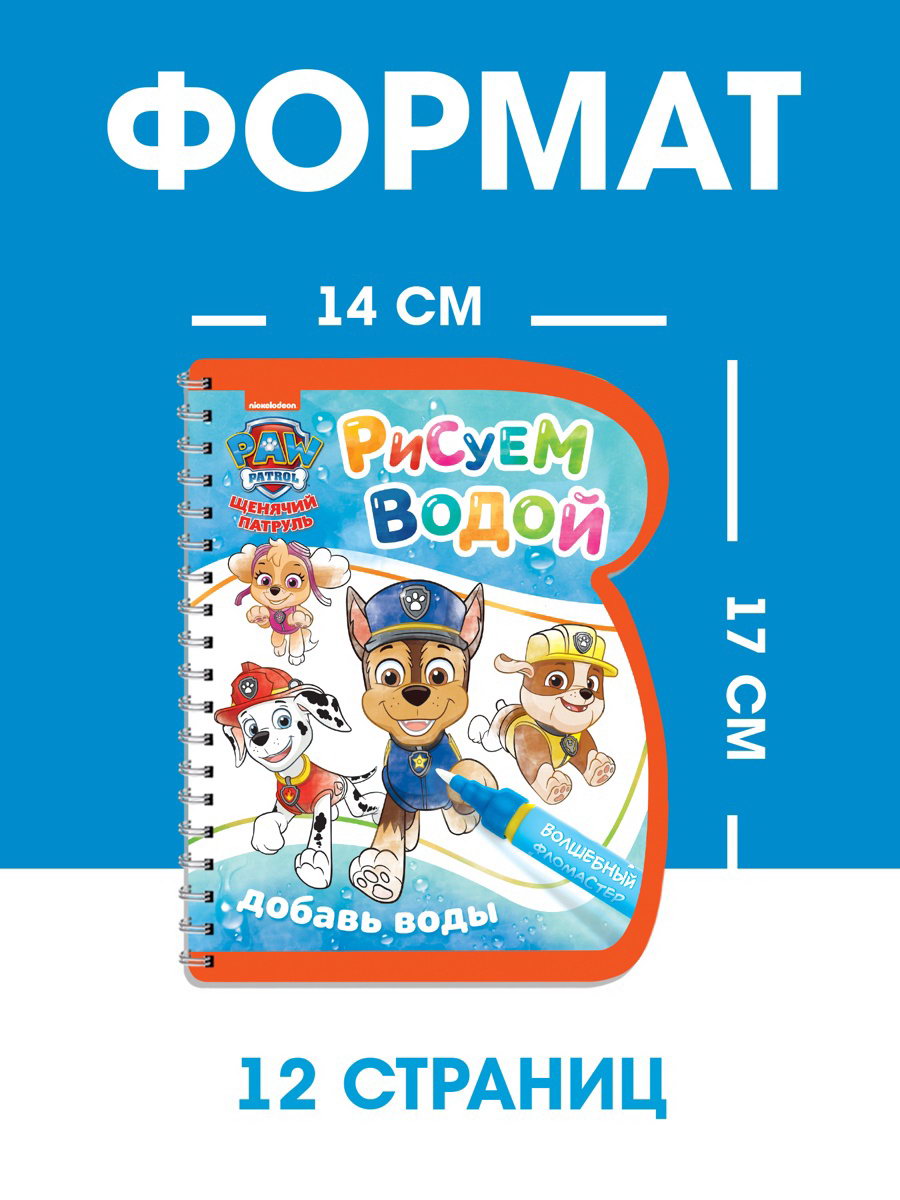 Раскраска многоразовая "Рисуем водой", с фломастером, 20x16.5x1 см., Paw Patrol, Китай
