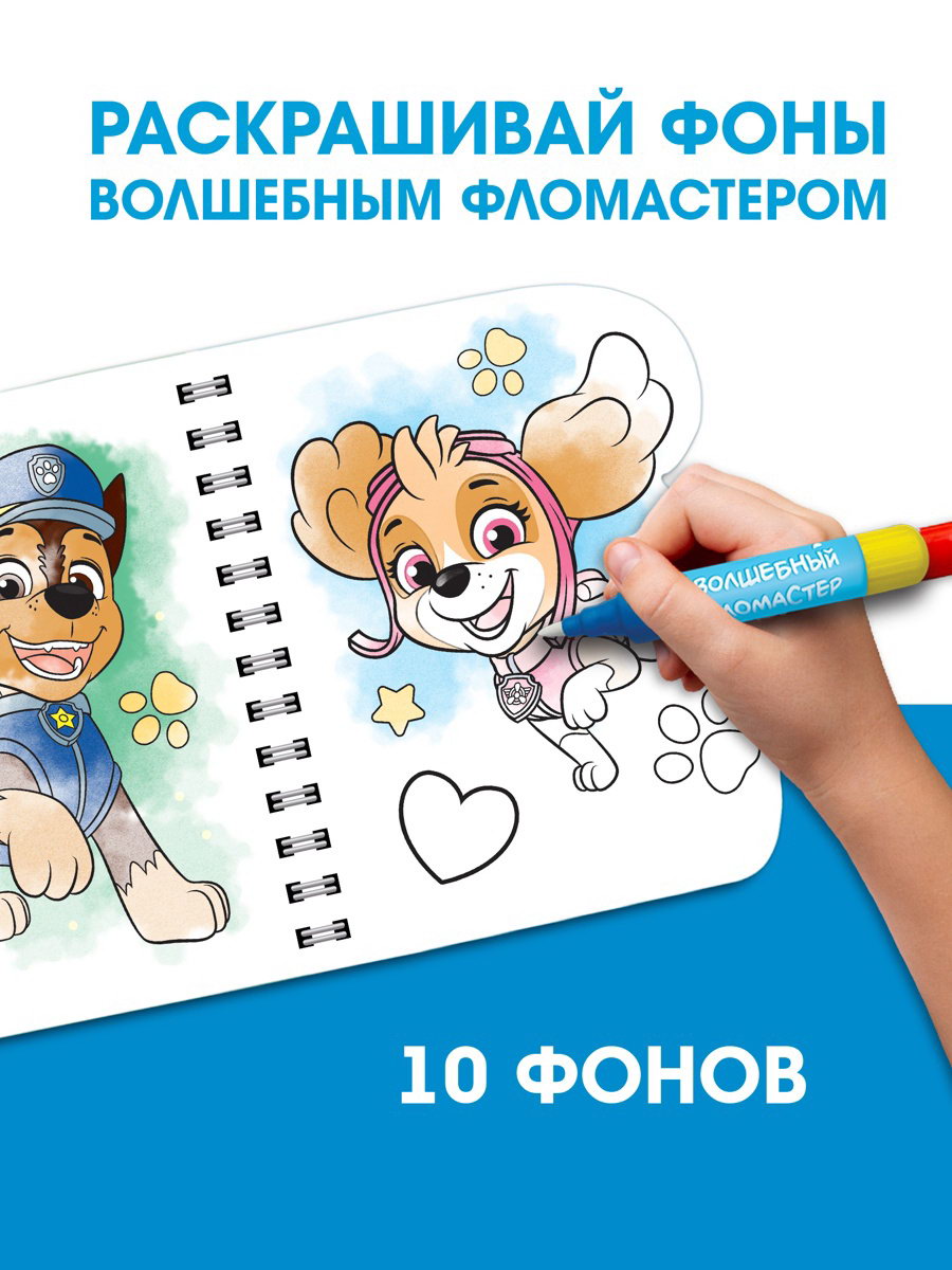 Творчество без следов Рисование водой помогает ребёнку развивать мелкую моторику, воображение и внимание к деталям. Каждая страница оживает под воздействием воды, а через несколько минут высыхает, позволяя начать заново. Любимые герои "Щенячьего патруля" делают процесс ещё более увлекательным. Это напоминает маленький театр, где каждое движение фломастера создаёт новую историю. Как играть