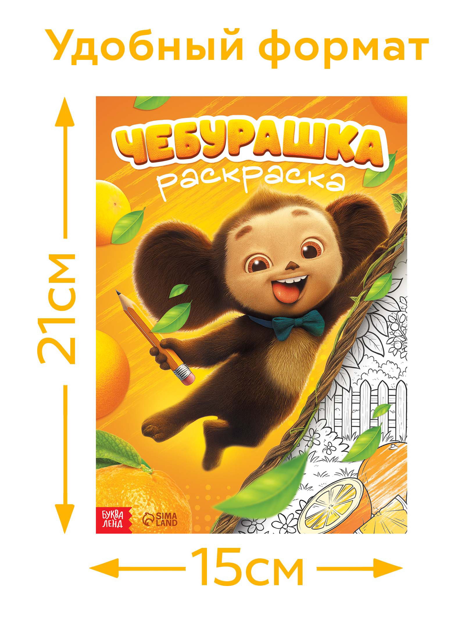 Раскраска "Чебурашка", А4, 16 стр., 21x0.1x29.7 см., ЧЕБУРАШКА, Россия