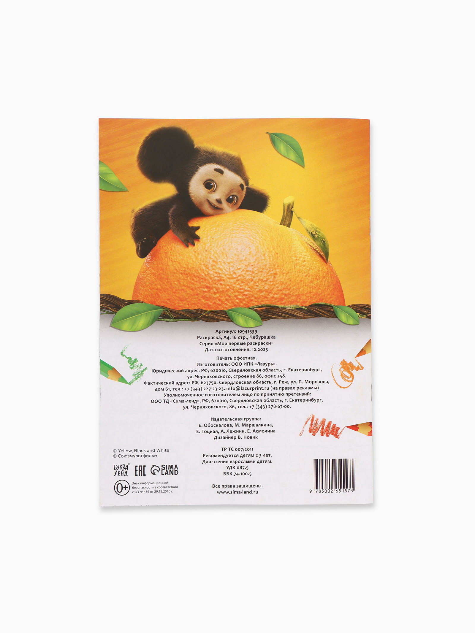 Размер упаковки: 21 x 0.5 x 29.5 см. tnved: 4903000000 Лицензия разработки: Да Набор: Нет Изображение: Мультфильмы Возраст: От 3 лет Количество страниц: 16 Вид раскраски: Классические Формат: А4 Комплектация набора: Без комплектации Чебурашка не просто герой, а настоящий друг детства. В этой раскраске он приглашает ребёнка в мир простых радостей: прогулок с Геной, игр в парке, помощи соседям и уютных вечеров. Крупные контуры на листах формата А4 удобно раскрашивать даже самым маленьким художникам, а знакомые сюжеты вызывают улыбку и желание творить. Почему эта раскраска пользуется доверием: