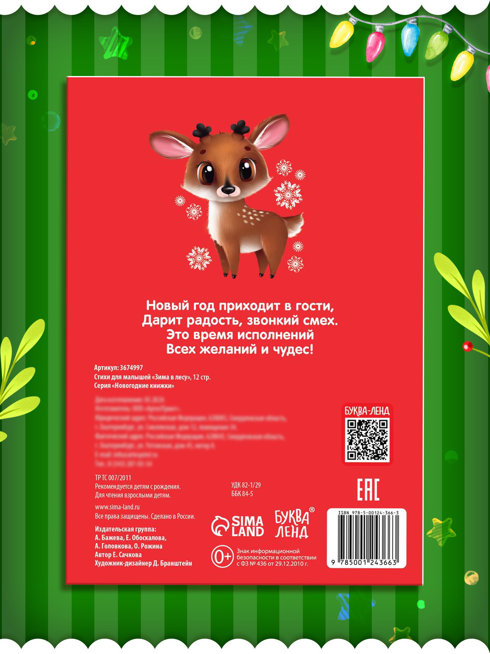 Возраст: Детский, Для детей, От 3 лет Вид книги: Обучающие книги, Стихи Размер упаковки: 15 x 0.2 x 21 см. Жанр: Стихи Игрушка с видео: Да Язык издания: Русский Формат: А5 Для кого: Унисекс tnved: 4903000000 tnved: 4903000000 Количество страниц: 12 Символ года: Нет Набор: Нет Тематика праздника: Новый год Автор: Сачкова Евгения Камилевна Тип обложки: Мягкий переплёт Стихи для малышей "Зима в лесу" это уютный сборник, который перенесёт ребёнка в волшебный мир зимнего леса. Страницы с простыми и запоминающимися стихами и яркими иллюстрациями создают праздничное настроение и помогают развивать воображение. Что внутри?