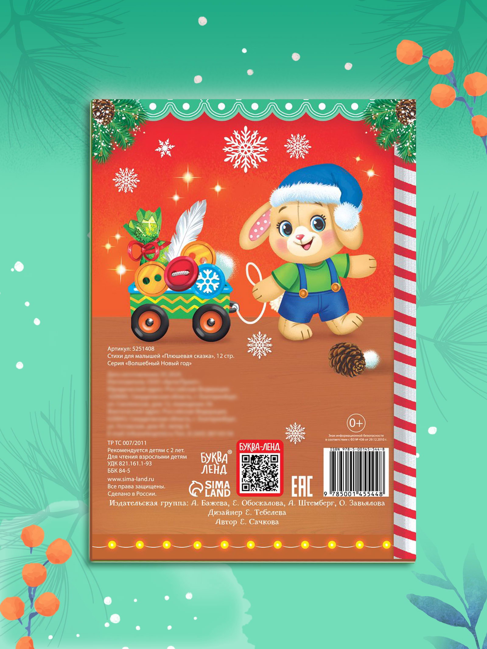 Возраст: Детский, Для детей, От 3 лет Размер упаковки: 15 x 0.2 x 21 см. Язык издания: Русский Формат: А5 Для кого: Унисекс Для кого: Унисекс tnved: 4903000000 Температурное ограничение: Нет Количество страниц: 12 Жанр: Стихи Вид книги: Стихи Набор: Нет Символ года: Нет Тематика праздника: Новый год Автор: Сачкова Евгения Камилевна Тип обложки: Мягкий переплёт Год издания: 2021 Стихи для малышей "Плюшевая сказка" это уютный сборник, который перенесёт ребёнка в мир волшебства и праздника. Сстраниц с простыми и запоминающимися стихами и яркими иллюстрациями создают атмосферу радости и вдохновения. Что внутри?