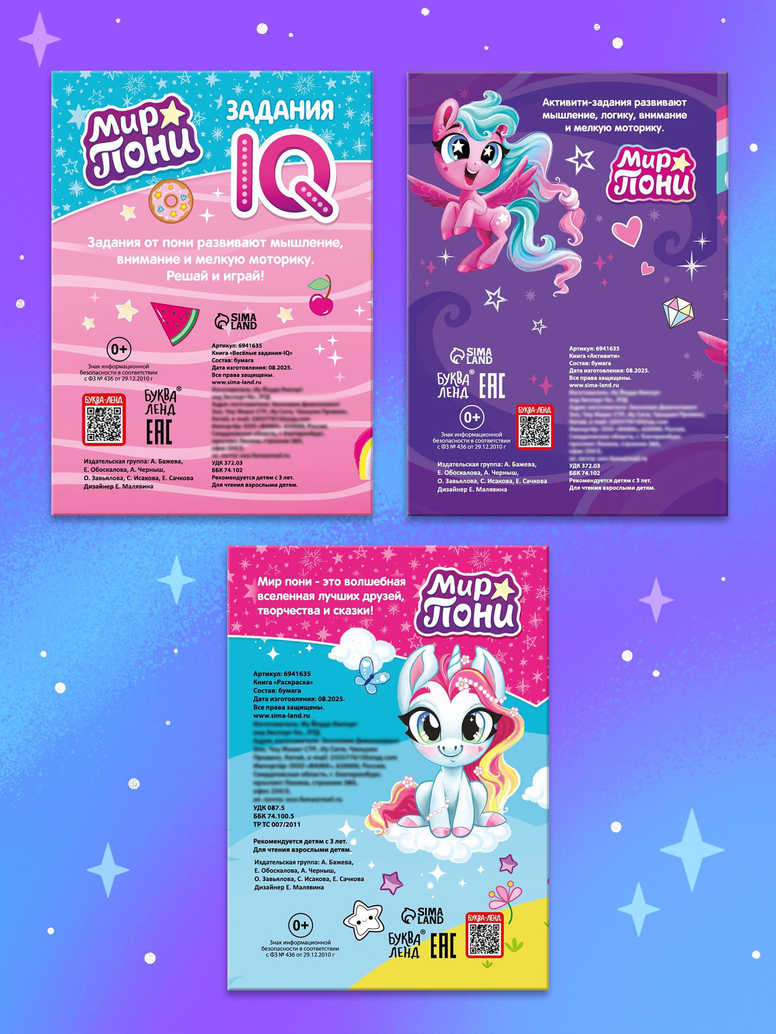Вид книги: Загадки и головоломки, Игра-книга, Раскраски Вид: Обучающие книги, Раскраски Размер упаковки: 16.5 x 0.3 x 11.5 см. tnved: 4903000000 Возраст: От 3 лет Тип обложки: Мягкий переплёт Формат: А5- Язык издания: Русский Автор: Коллектив авторов Набор: Да Набор книжек для девочек "Мир пони" это комплект из трёх изданий для активного и творческого досуга девочек от 3 лет. Внутри вы найдёте активити-книгу, раскраску и книгу с заданиями, наполненными изображениями милых пони. Мягкий переплёт каждой книжки делает их удобными для использования дома или в дороге. Особенности