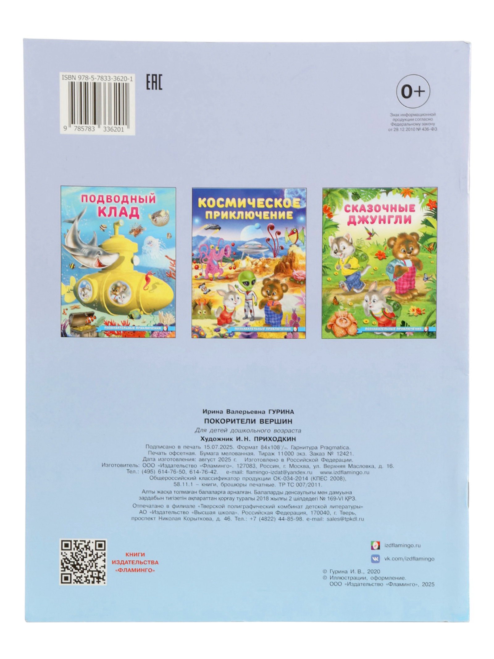 Размер упаковки: 20 x 0.5 x 26 см. tnved: 4901990000 Температурное ограничение: Нет Автор: Гурина Ирина Валерьевна Тип обложки: Мягкий переплёт Возраст: От 3 лет Язык издания: Русский Количество страниц: 16 Набор: Нет Жанр: Приключения Год издания: 2025 Формат: А4+ Эта история не о горах, а о внутренней силе. Герои Ирины Гуриной идут навстречу трудностям. Но они не останавливаются. Вместо громких подвигов тихая решимость сделать ещё один шаг. Через простые слова и честные эмоции книга помогает ребёнку понять: быть смелым значит идти вперёд, даже когда страшно. Почему эту книгу выбирают родители: