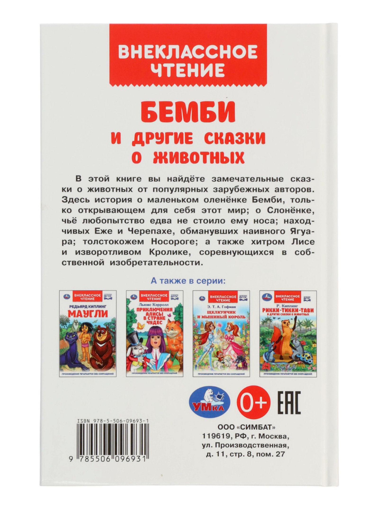 Размер упаковки: 0.9 x 20.5 x 13 см. tnved: 4903000000 Температурное ограничение: Нет "Бемби и другие сказки о животных" это книга, в которой лес становится домом, а звери самыми чуткими учителями. Почему эта книга остаётся в памяти: