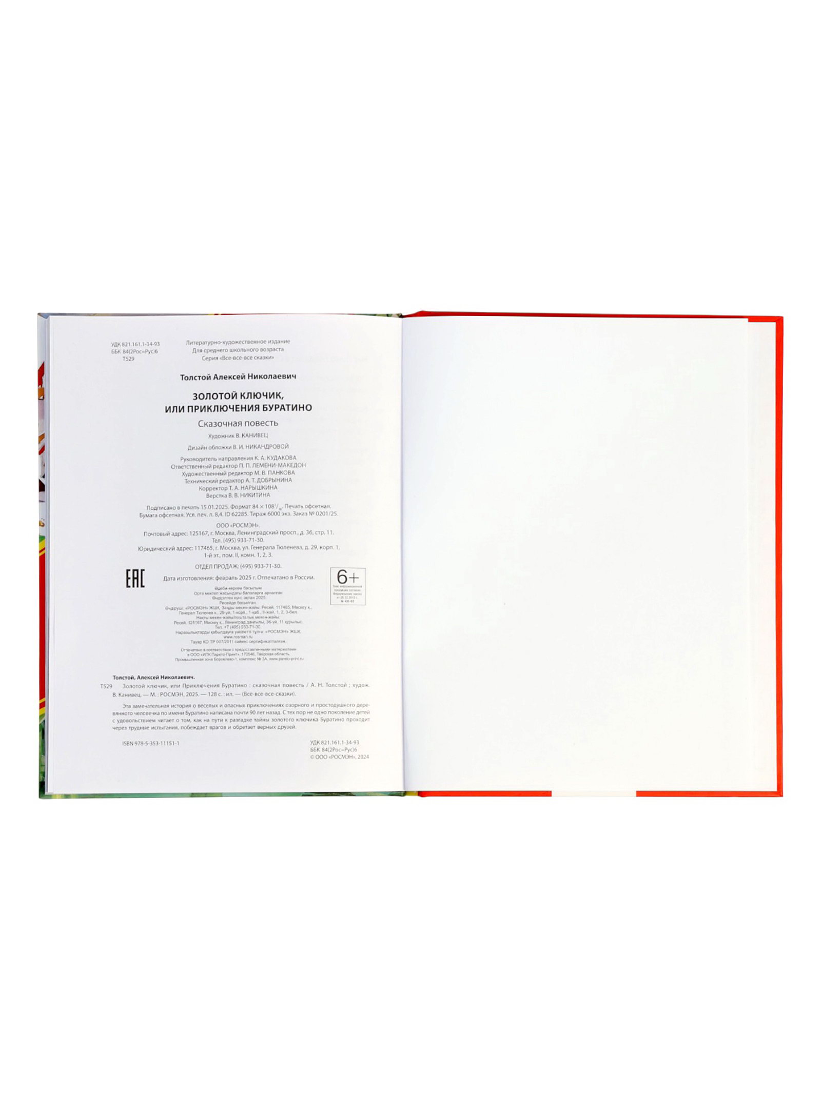 Размер упаковки: 1 x 26.5 x 20.5 см. tnved: 4901990000 Температурное ограничение: Нет Год издания: 2025 Жанр: Сказка Автор: Толстой Алексей Николаевич Возраст: От 3 лет Количество страниц: 128 Набор: Нет Язык издания: Русский Тип обложки: Твёрдый переплёт Алексей Толстой рассказывает о серьёзных вещах легко, с юмором и теплотой. Ребёнок не просто слушает сказку он переживает приключения вместе с Буратино, Пьеро и Мальвиной, а заодно усваивает важные жизненные уроки. Почему эта книга работает: