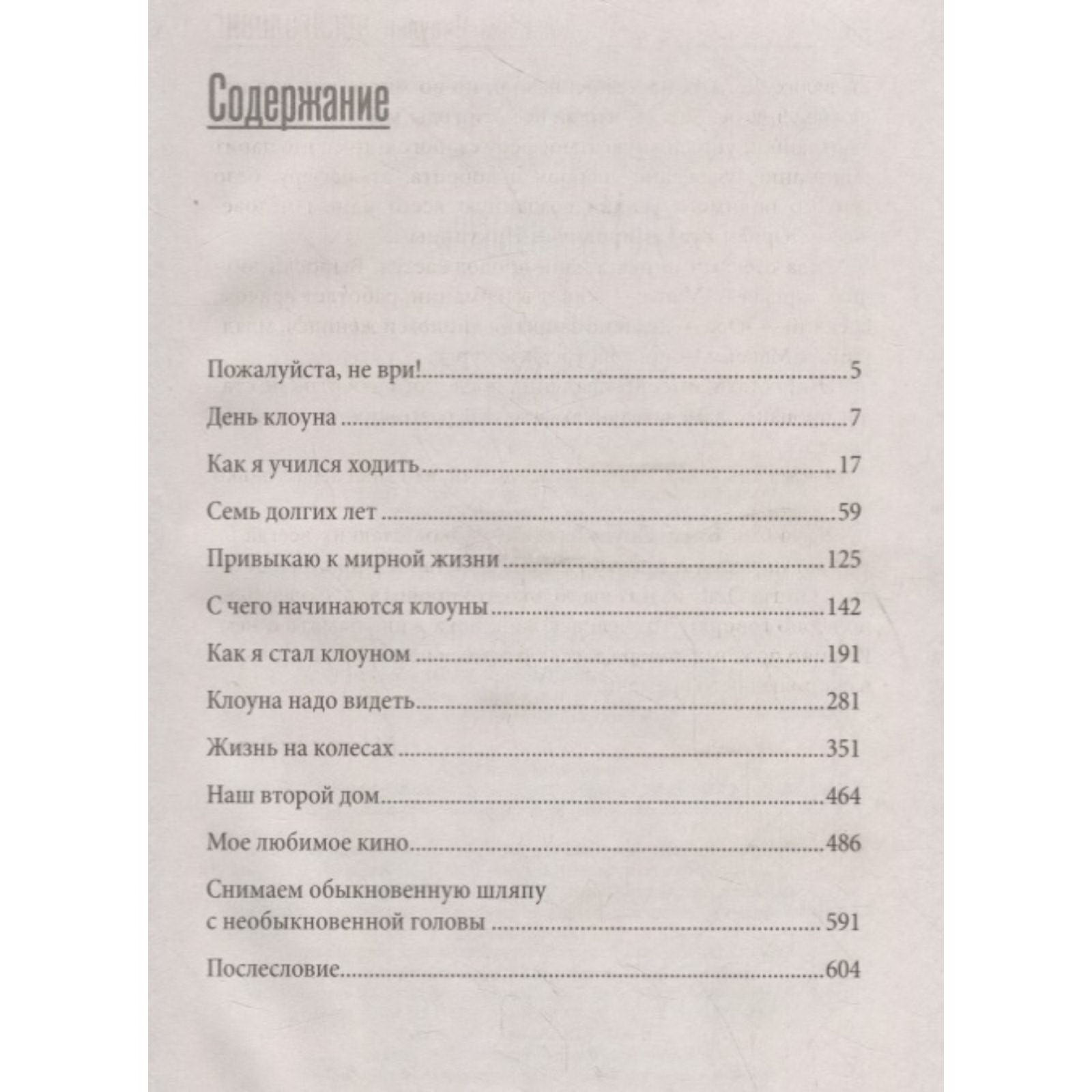 Возраст: Для взрослых, От 12 лет Размер упаковки: 14 x 3 x 21 см. tnved: 4903000000 Тип обложки: Твёрдый переплёт Количество страниц: 608 Тип бумаги: Типографская 60/60 Год издания: 2021 Формат страниц: 138 x 212 Автор: Никулин Юрий Владимирович Набор: Нет Книги ТОП-100: Нет Юрий Владимирович Никулин… За этим именем стоят веселые цирковые репризы ("Насос", "Лошадки", "Бревно", "Телевизор" идругие), прекрасно сыгранные роли влюбимых всеми фильмах (среди них "Пес Барбос инеобычный кросс", "Самогонщики", "Кавказская пленница…", "Бриллиантовая рука", "Старики-разбойники", "Они сражались за Родину") и, конечно, Московский цирк на Цветном бульваре, приобретший мировую известность. Настоящая книга это чуть ироничный рассказ осебе исерьезный одругих: родных иблизких, знаменитых ималоизвестных, но невероятно интересных людях цирка икино. Книга полна юмора. Вней нет неправды. Вней не приукрашивается собственная жизнь ижизнь вообще. "Попытайтесь осчастливить хотя бы одного человека ина земле все остальные будут счастливы", пишет всвоей книге Юрий Никулин. Откройте ее, ивы почувствуете, что он сидит рядом свами ирассказывает свою историю именно вам. | ||