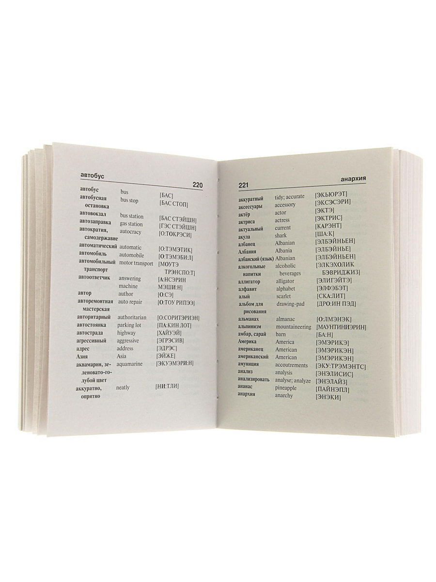 Учимся уверенно Этот словарь не просто справочник, а надёжный проводник в мир английского языка. Каждая страница помогает освоить новые слова, словно собирая мозаику языковых знаний. Это подобно "дорожной карте", где каждое слово становится шагом к свободному общению. Транскрипция русскими буквами делает процесс обучения интуитивно понятным, а компактный формат позволяет всегда иметь словарь под рукой. Словарь станет отличным выбором для школьников, студентов и взрослых, изучающих английский язык самостоятельно или на курсах. Он подходит для домашнего использования, занятий в учебных заведениях или путешествий. Выбирая этот словарь, вы получаете удобный инструмент, который шаг за шагом поможет овладеть языком, где каждое новое слово становится маленькой победой! | ||