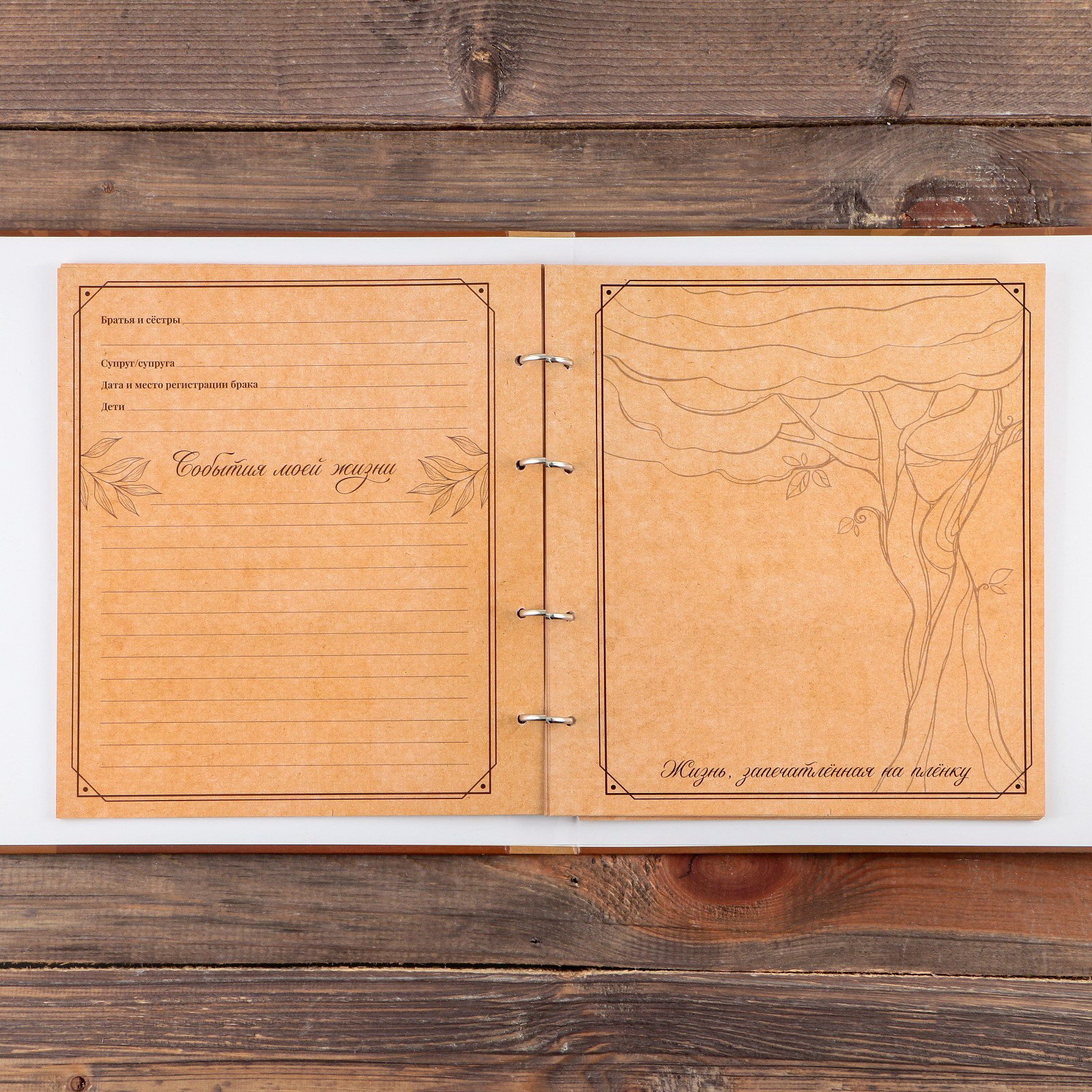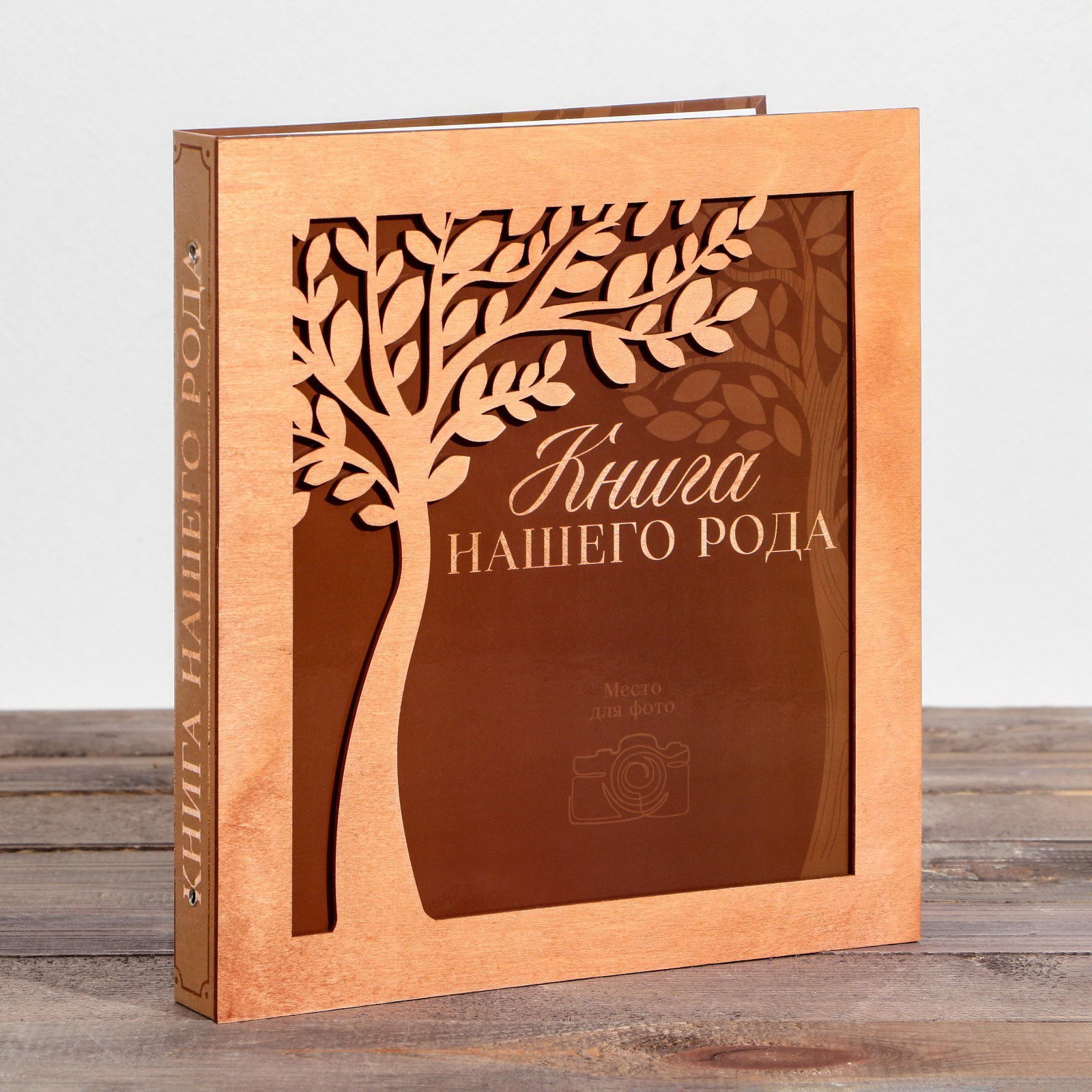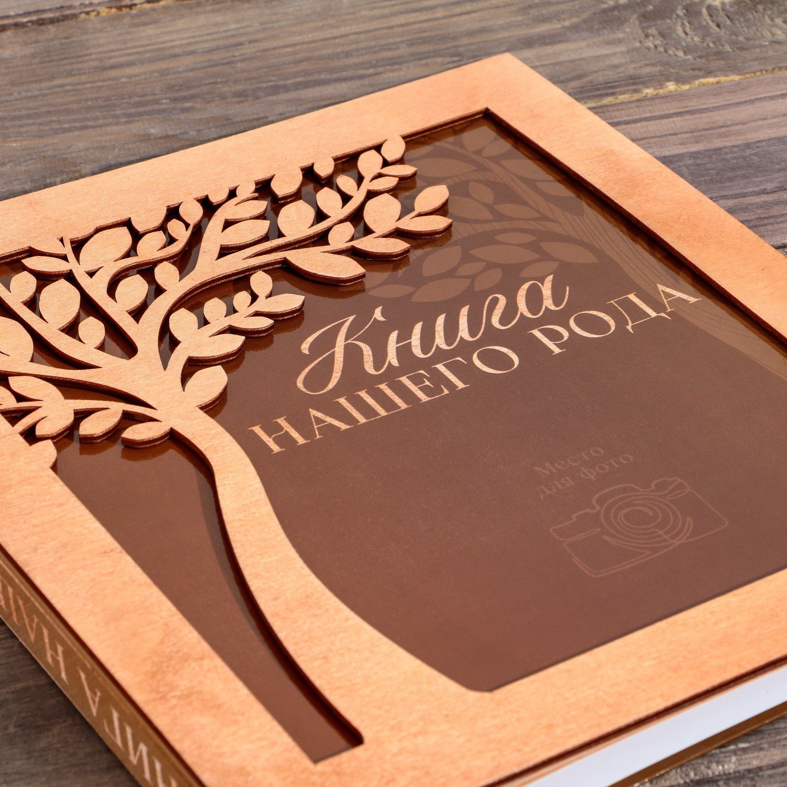 Родословная фото-книга "Книга нашего рода" с деревянным элементом, 27.5 x 25 см, 25x27.5x3 см., Семейные традиции, Россия