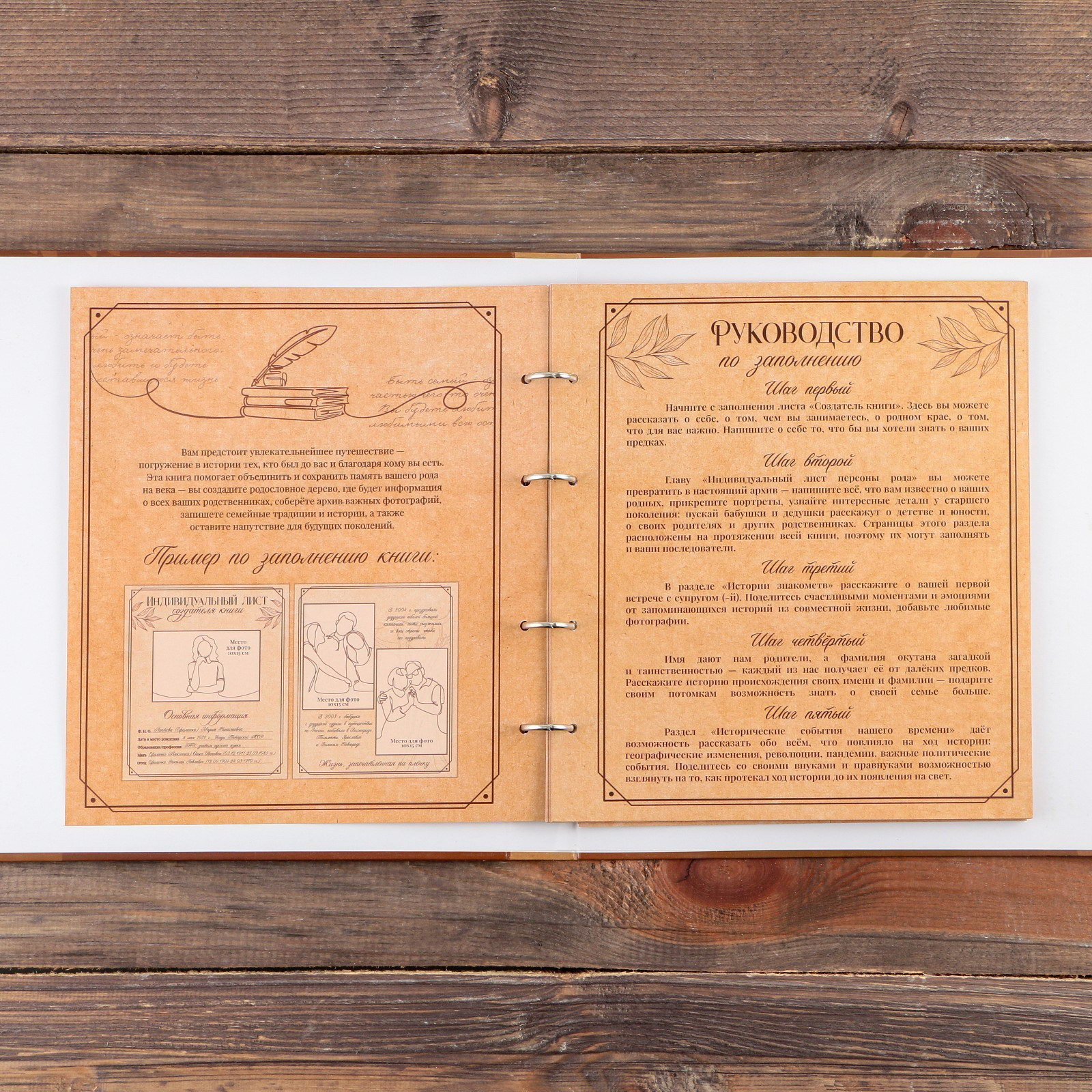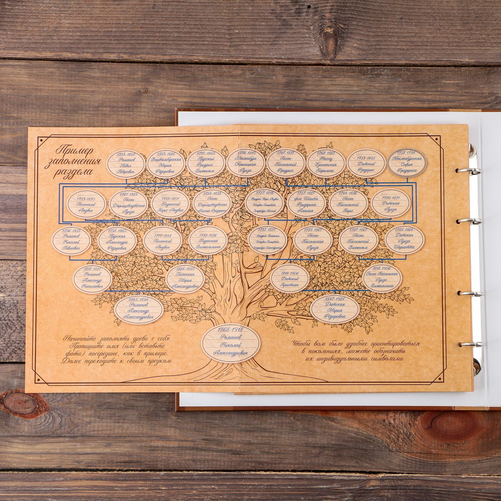 Материал обложки: Дерево, Картон Размер упаковки: 27 x 25 x 3 см. Размер упаковки: 27 x 25 x 3 см. tnved: 4901100000 Температурное ограничение: Нет Количество листов: 34 Плотность, г/?2: 150 Количество страниц: 68 Семейные традиции самое ценное, что есть в жизни человека. Кто из нас не хочет оставить память о себе и своих близких будущим поколениям? Ведь история может быть поводом для гордости! Для создания летописи вам пригодится родословная книга с аристократическим дизайном. Родословная книга в твёрдом переплёте содержит 34 листа (включая инструкции, наименование частей, лист генеалогического древа формата А2) и лист наклеек. Обложка книги украшена деревянным элементом. Структура книги: