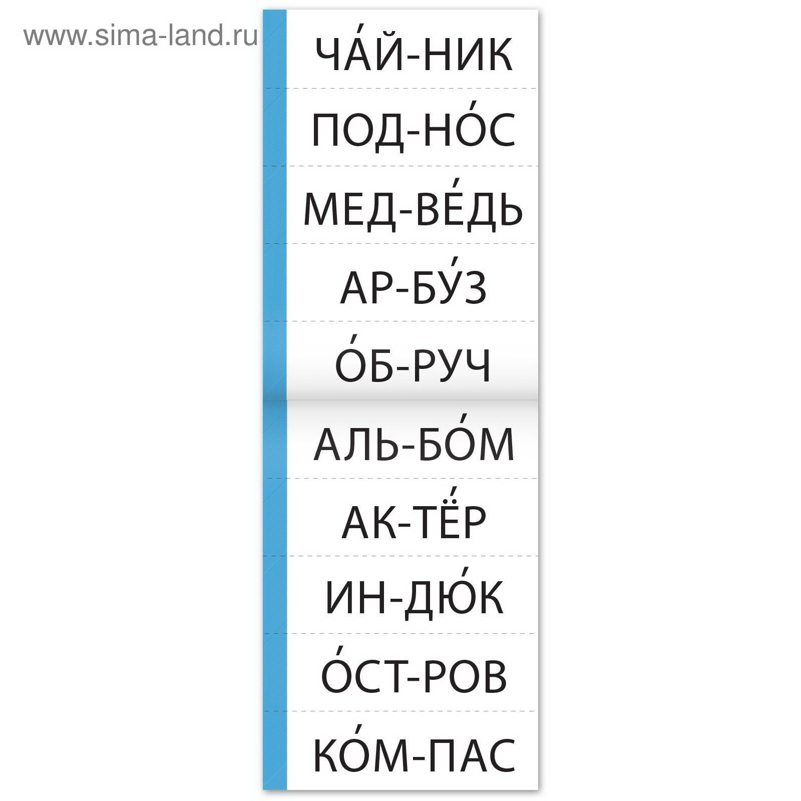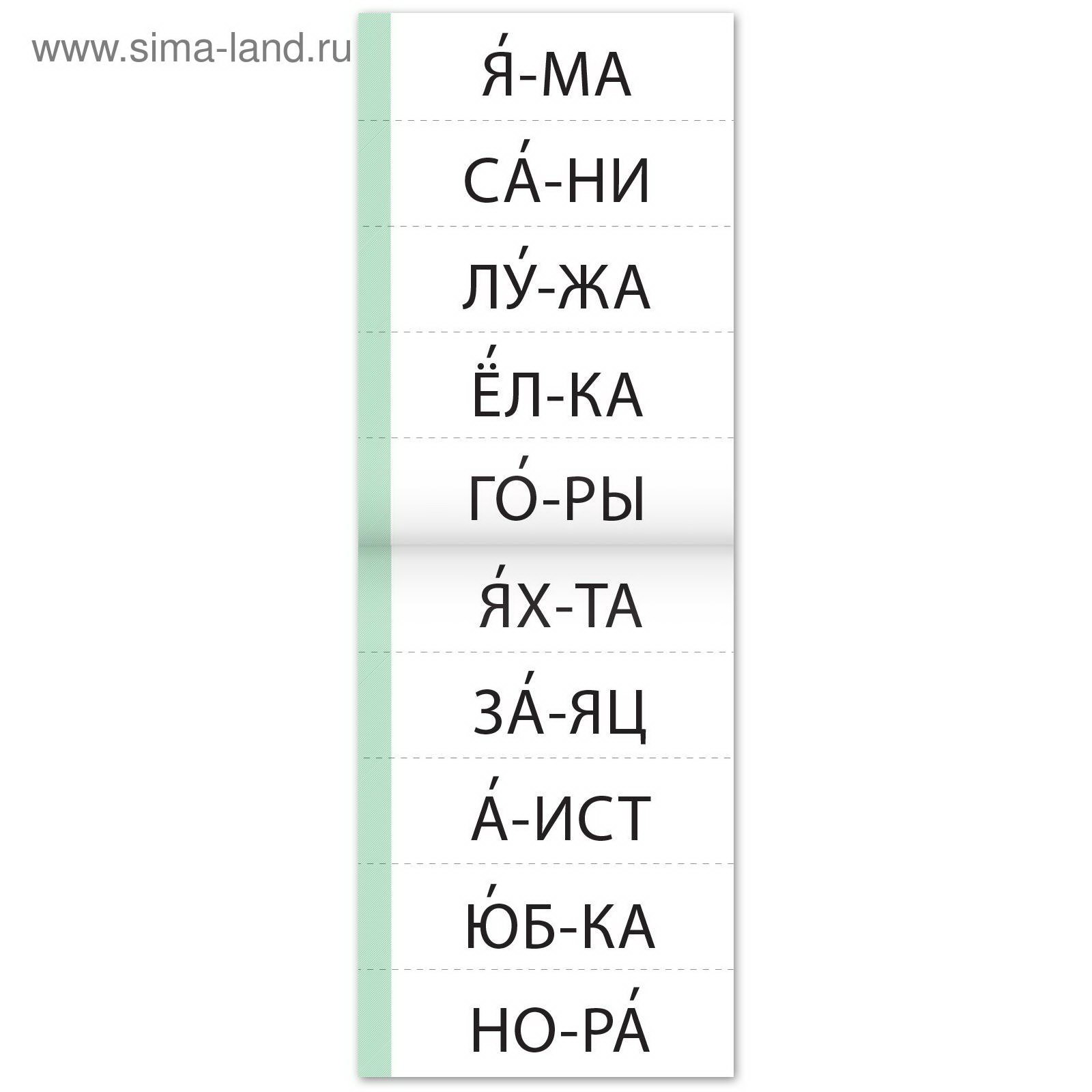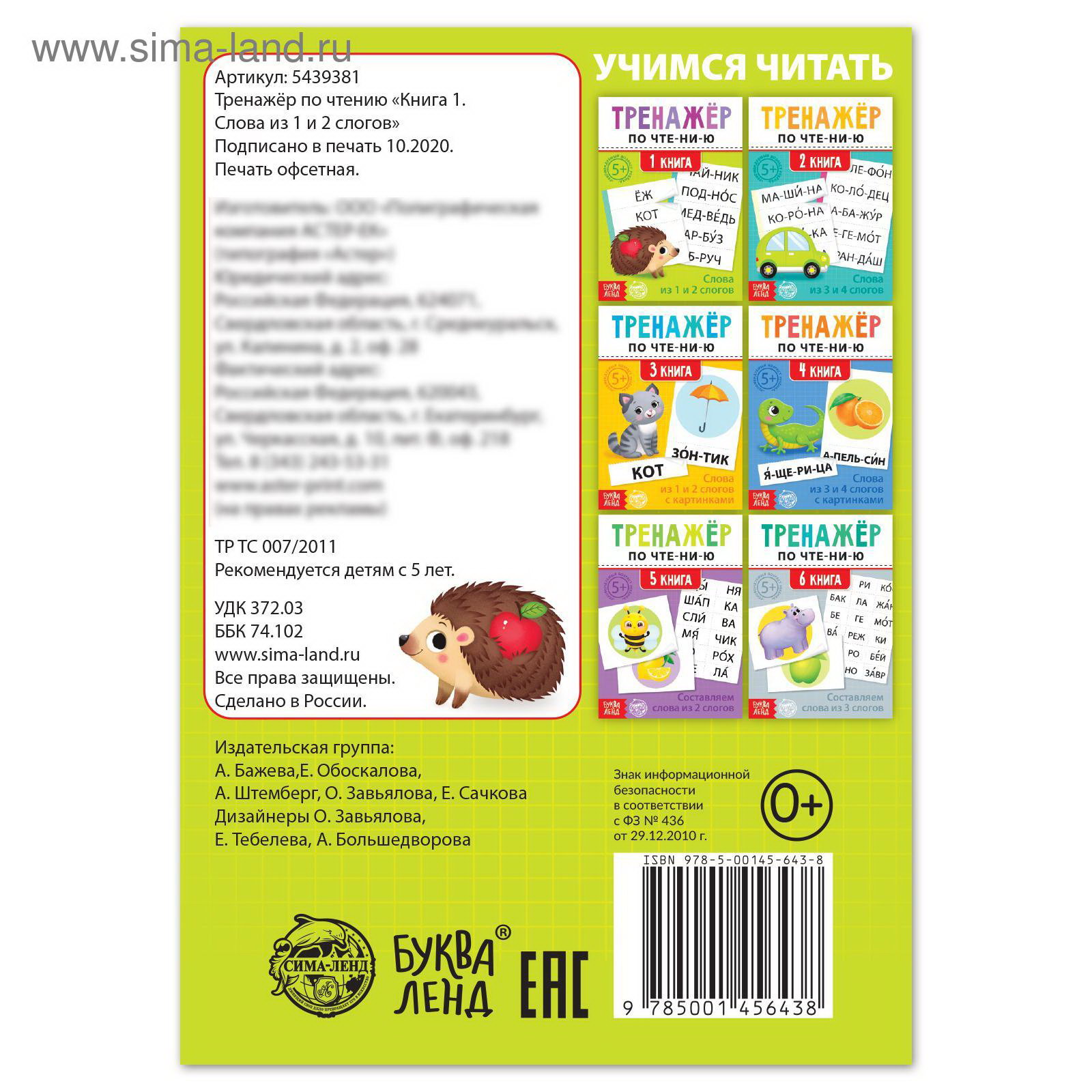 Тренажёр по чтению "1 книга. Слова из 1 и 2 слогов", 12x17x0.2 см., БУКВА-ЛЕНД, Россия