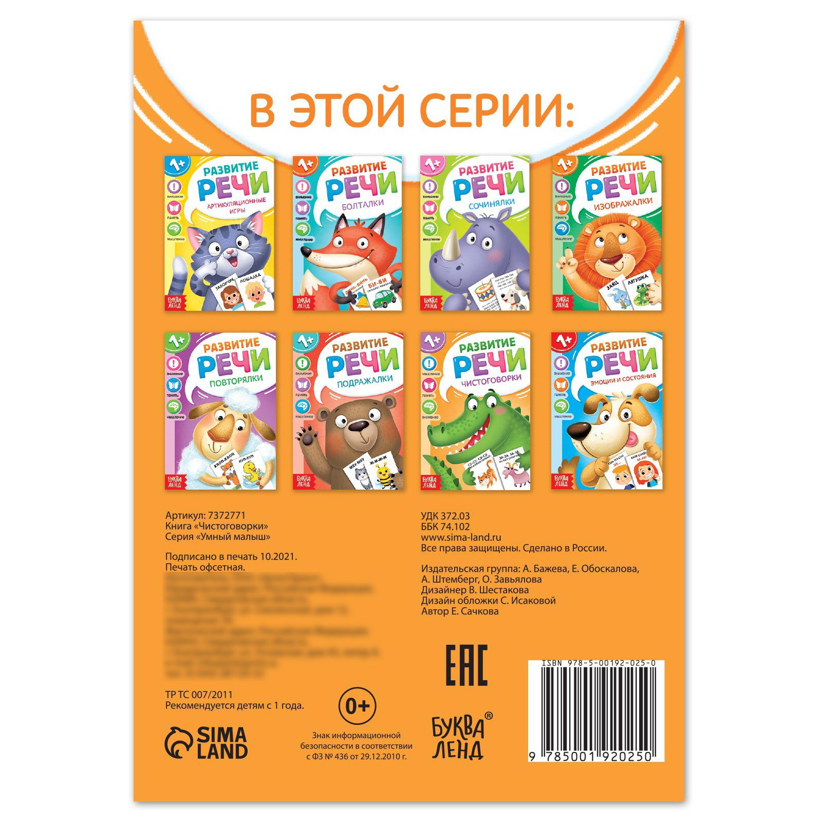 Книга по развитию речи "Чистоговорки", 20 стр., 12x17x0.5 см., БУКВА-ЛЕНД, Россия