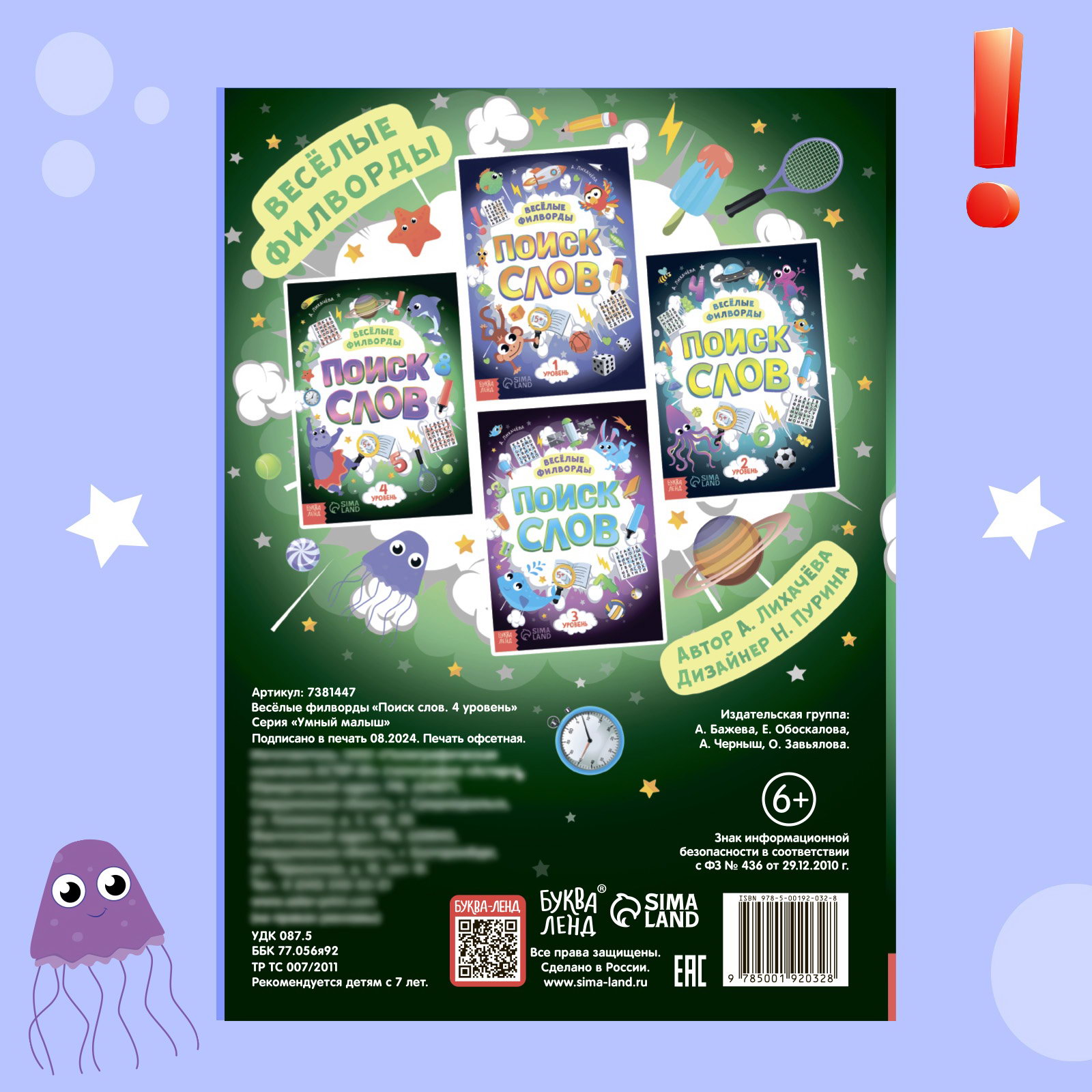 Весёлые филворды "Поиск слов. 4 уровень", 16 стр., 0.1x24x17 см., БУКВА-ЛЕНД, Россия