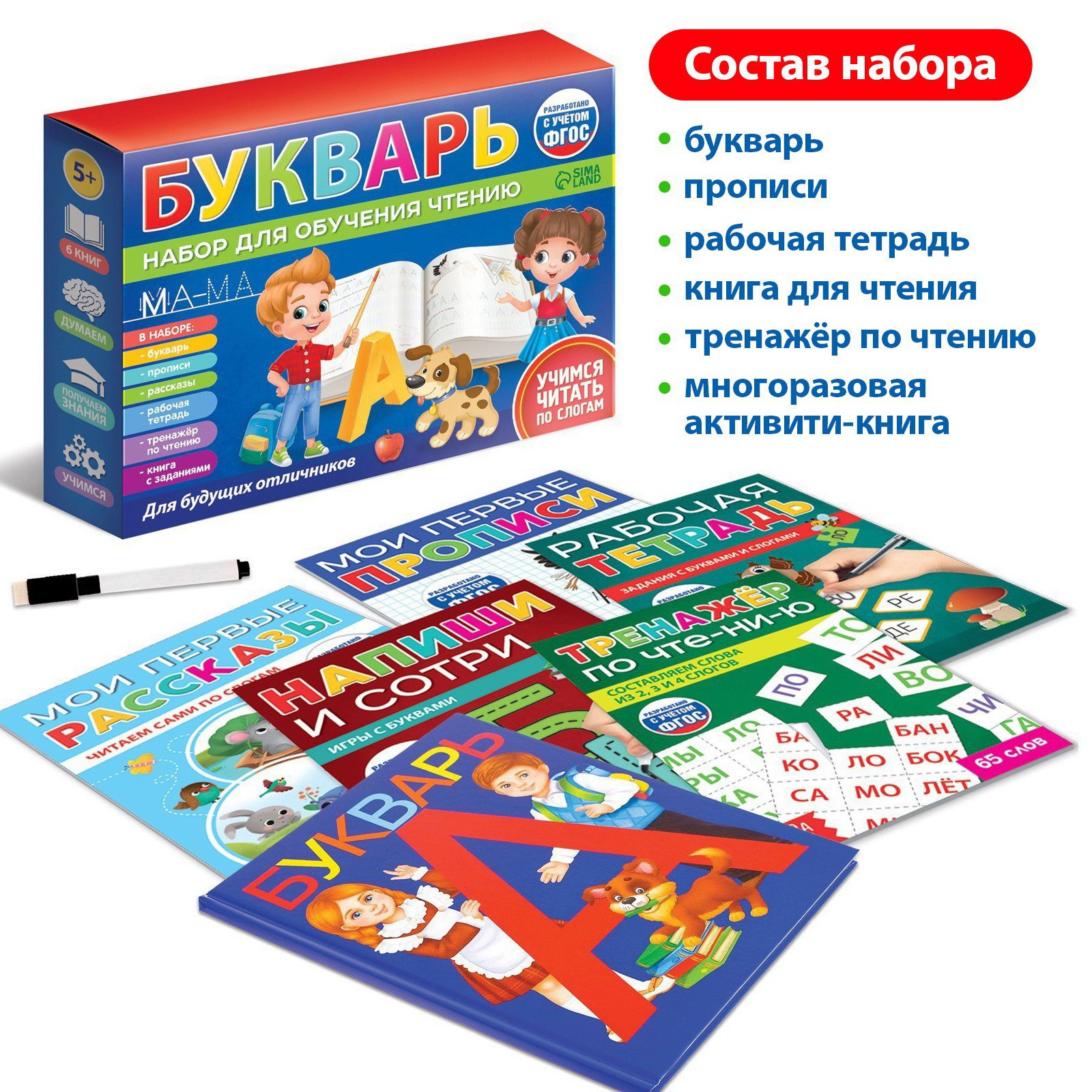 Набор для обучения чтению "Букварь", 6 книг, от 5 лет, БУКВА-ЛЕНД, Россия