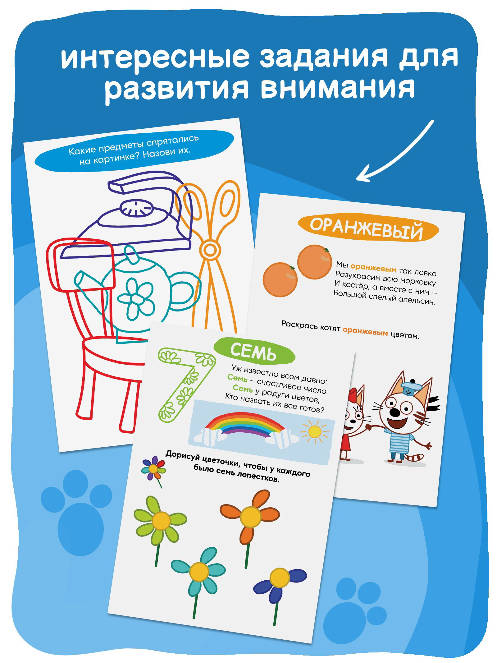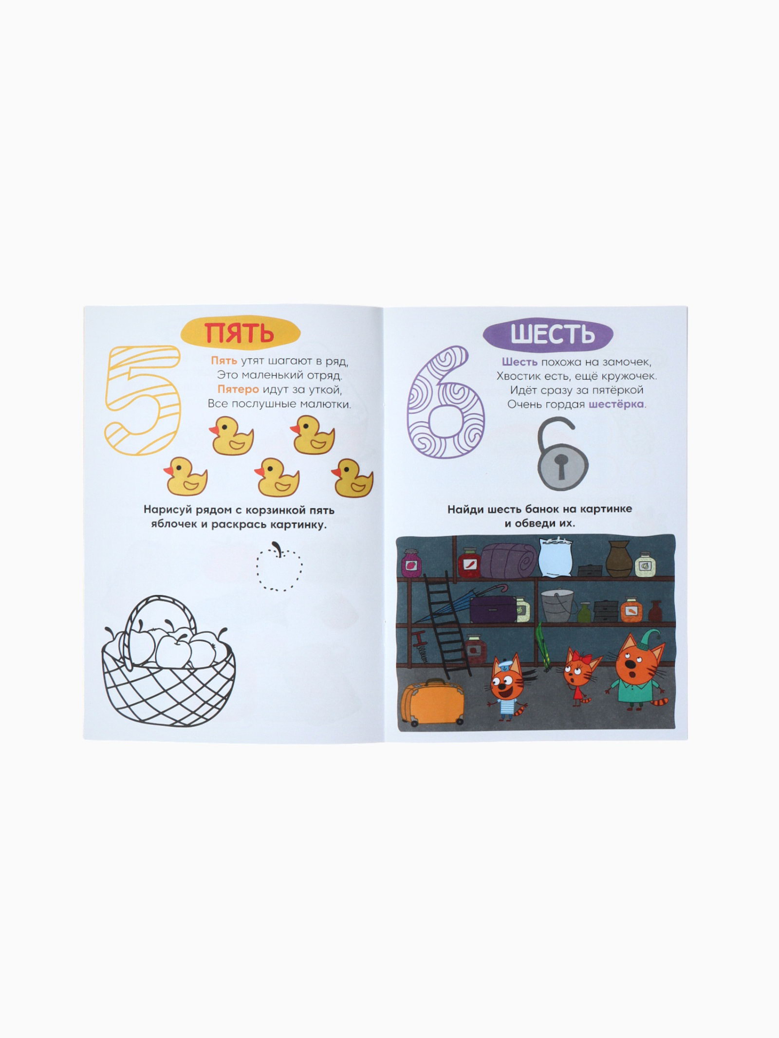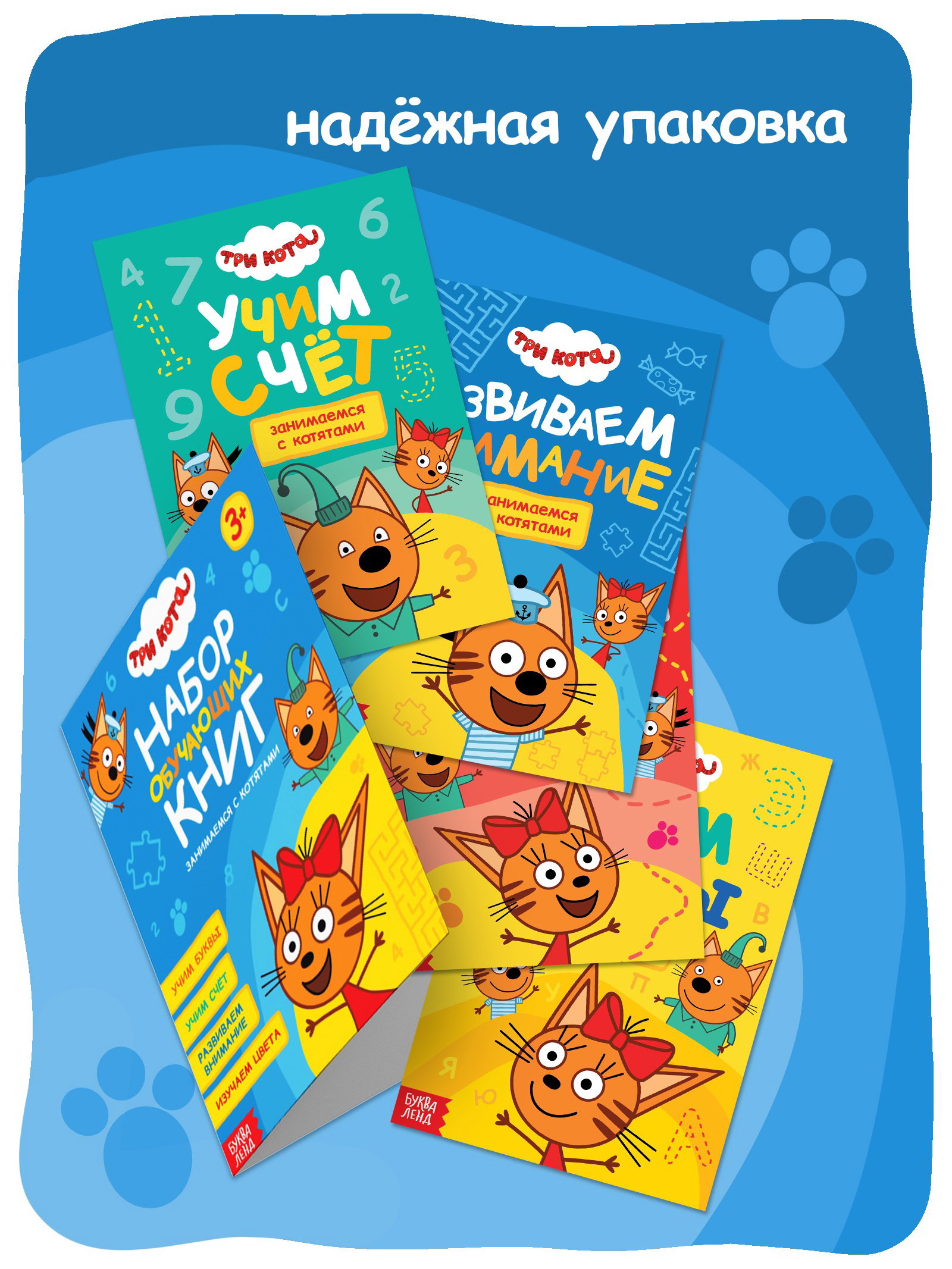 Книги детские "Занимаемся с котятами", набор 4 шт. по 20 стр., А5, 21x14.8x0.5 см., Три кота, Россия