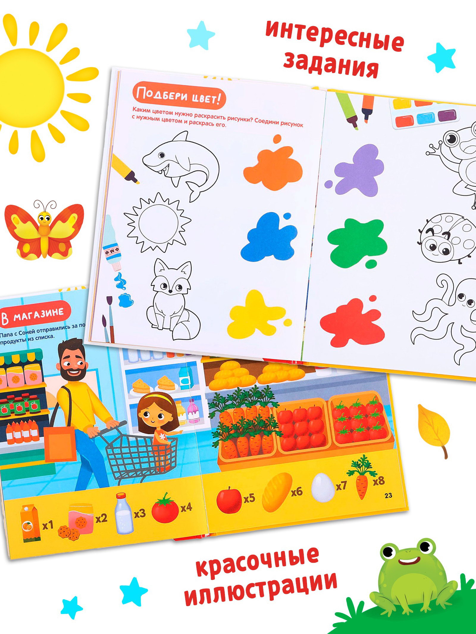 Как это работает? Ребёнок открывает книгу и погружается в мир знаний, где каждая страница это новое открытие. Это похоже на "путешествие в страну открытий", где каждое задание помогает малышу освоить что-то важное: от узнавания цветов до счёта и изучения животных. Яркие иллюстрации привлекают внимание, а задания стимулируют интерес к обучению. Книга становится не просто источником знаний, но и инструментом для развития мышления и речи. Польза для развития