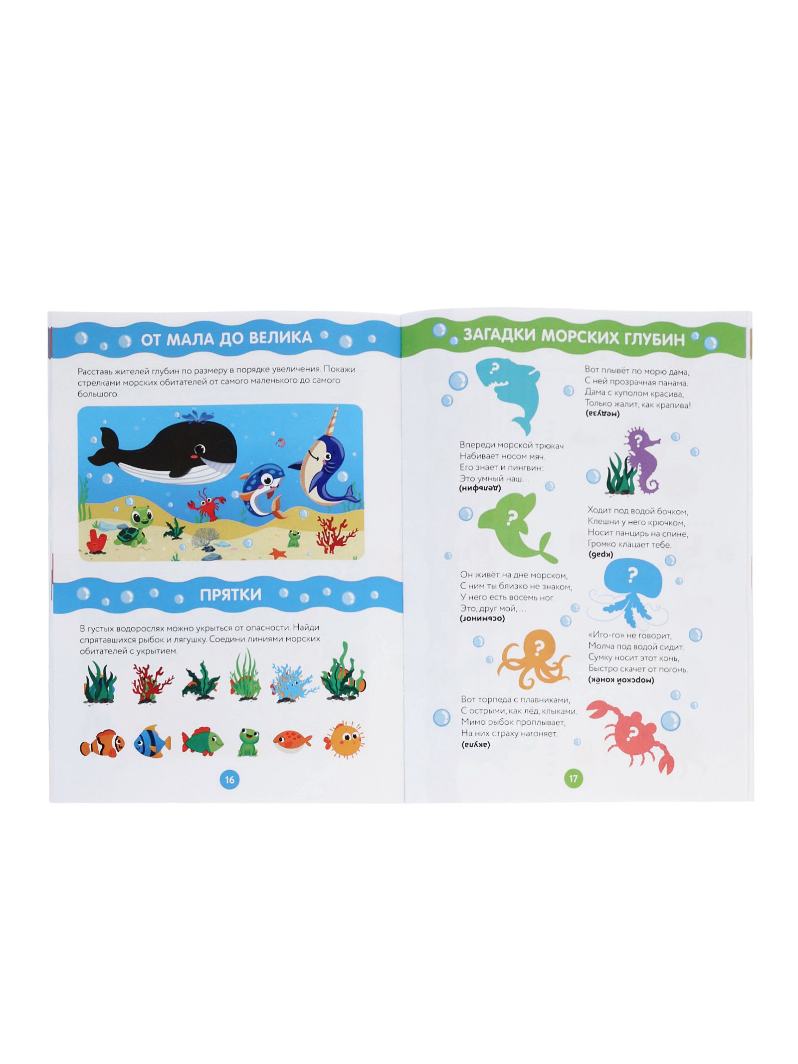 Как это работает? Ребёнок открывает тетрадь и отправляется в путешествие по морским глубинам, где каждая страница это новое открытие. Это похоже на "погружение с аквалангом", где каждый рисунок и задание помогают узнать что-то новое о жизни рыб, кораллов и других обитателей океана. Задания стимулируют логическое мышление, развивают воображение и расширяют кругозор, делая обучение естественным и приятным. Польза для развития
