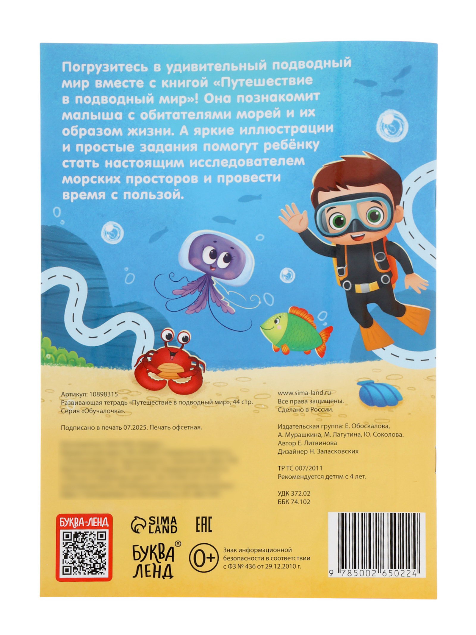 Рабочая тетрадь "Путешествие в подводный мир", 44 стр., 4+, 20x1x28 см., БУКВА-ЛЕНД, Россия