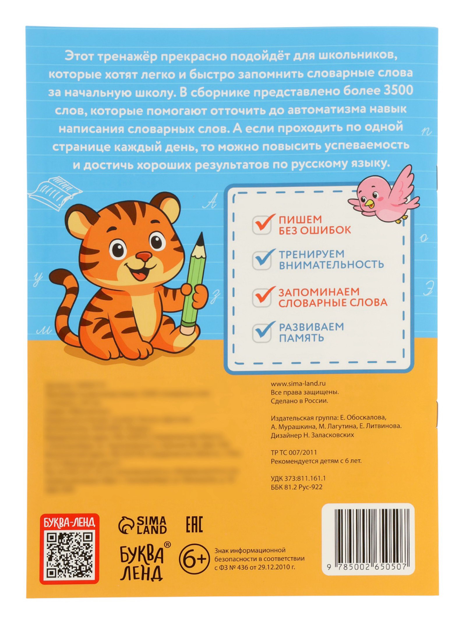 Тренажёр по русскому языку "3500 словарных слов 1-4 класс", 24 стр., 20x0.3x28 см., БУКВА-ЛЕНД, Россия