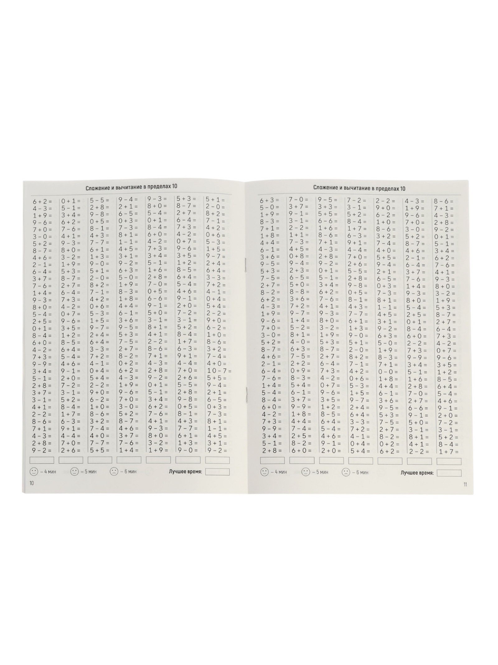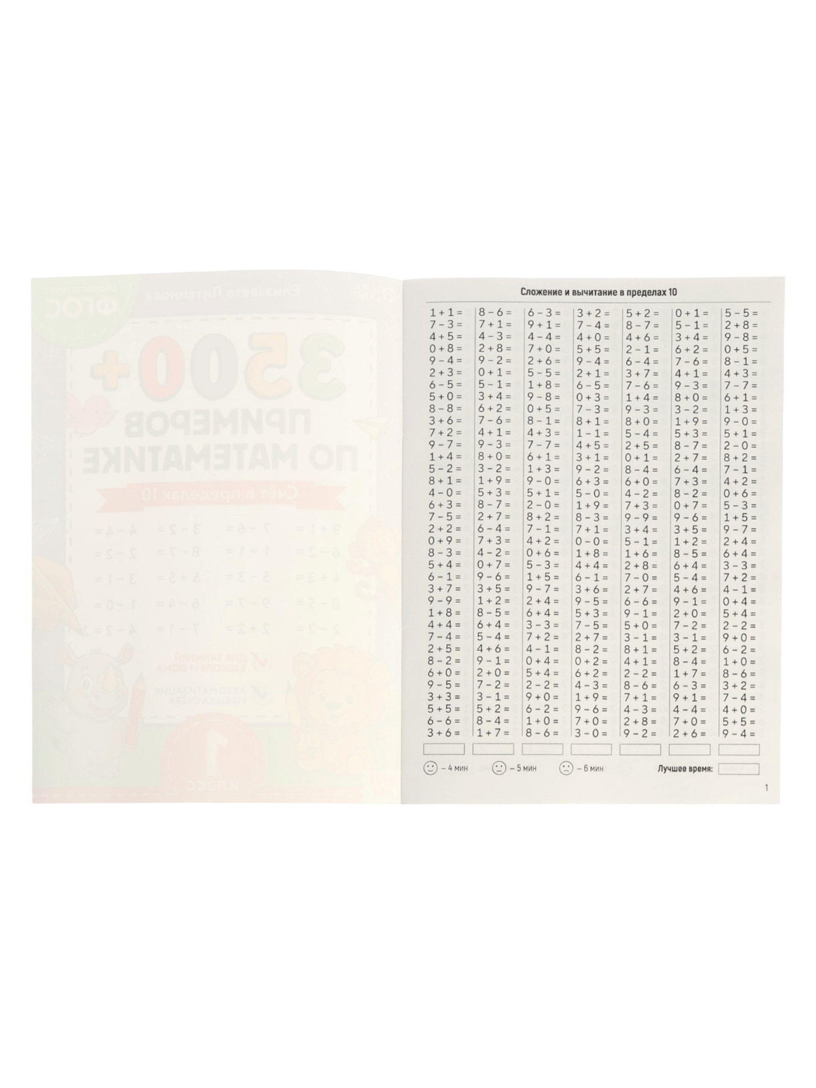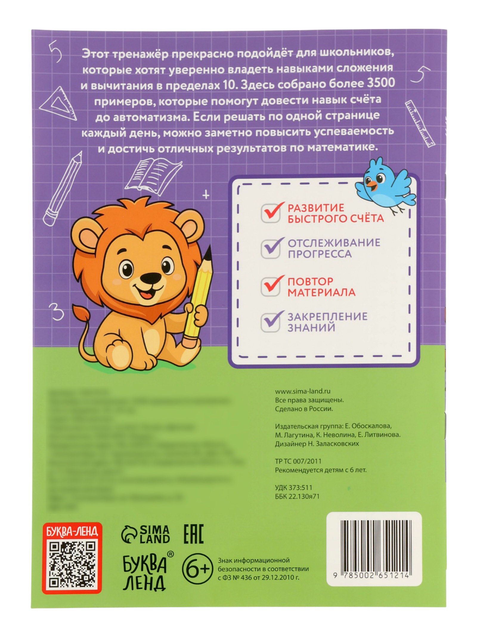 Тренажёр по математике "3500 примеров по математике. Счёт в пределах 10", 24 стр., 20x0.3x28 см., БУКВА-ЛЕНД, Россия
