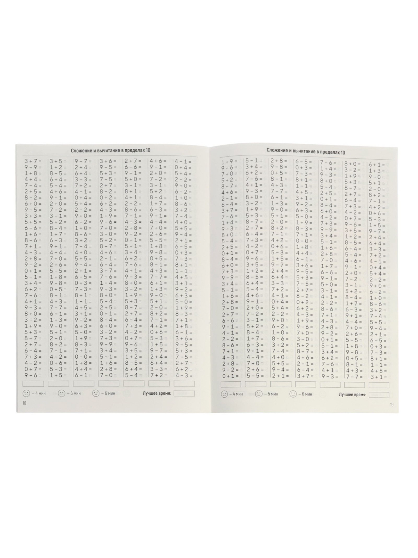 Размер упаковки: 20 x 0.5 x 28 см. tnved: 4903000000 Формат: А4- Язык издания: Русский Возраст: От 6 лет Автор: Литвинова Елизавета Александровна Тема обучения: Цифры, счёт, математика Год издания: 2025 Набор: Нет Количество страниц: 24 Этот тренажёр первый шаг к тому, чтобы ребёнок не боялся цифр. Сложение и вычитание в пределах 10 основа всей арифметики, и если она "села прочно", учёба пойдёт легче. Задания простые, но системные: каждый день по одному столбику и через неделю ребёнок уже не считает по пальцам, а отвечает мгновенно. Почему родители выбирают именно этот тренажёр: