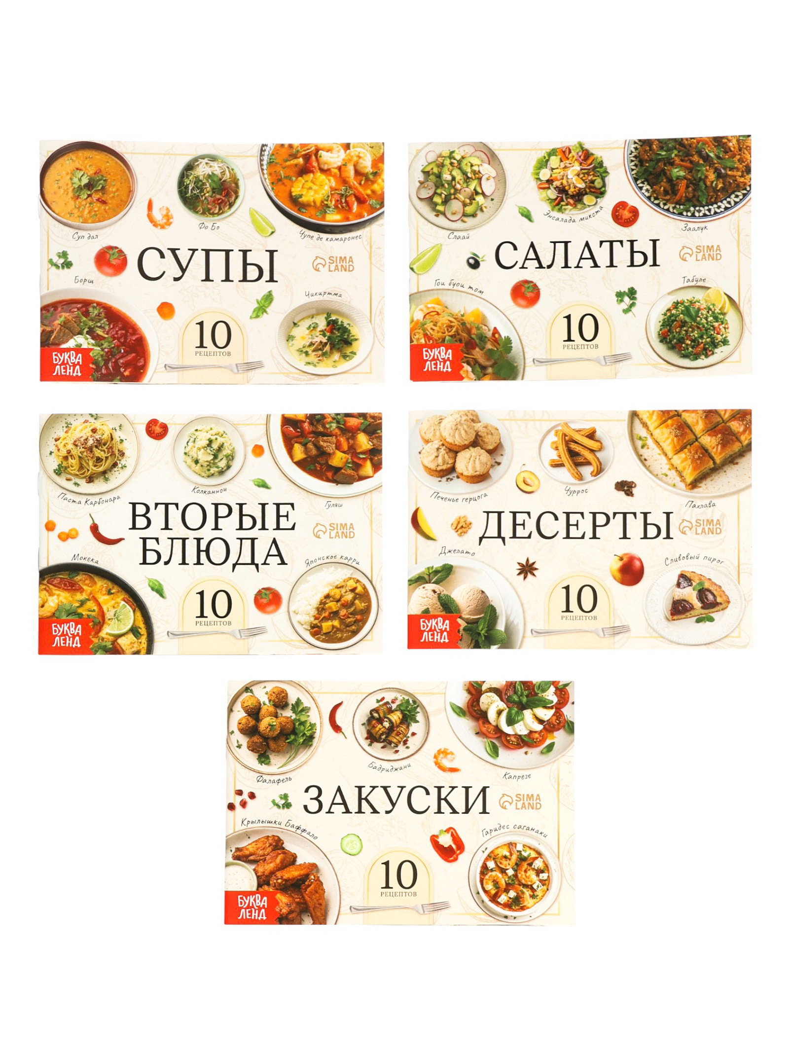 Книжное комплектное издание "Лучшие рецепты со всего света", 5 книг по 24 стр, 24x2x17 см., БУКВА-ЛЕНД, Россия