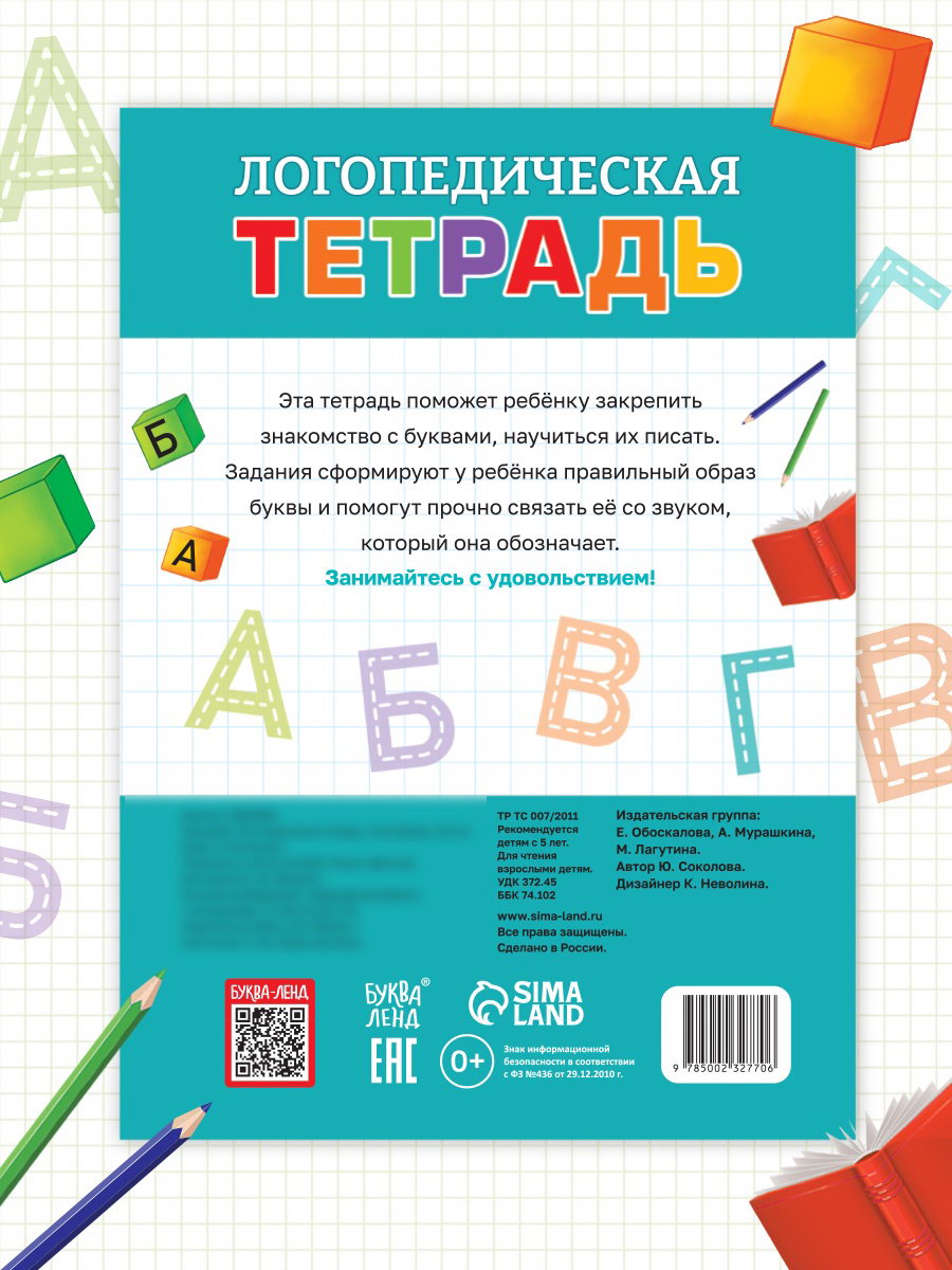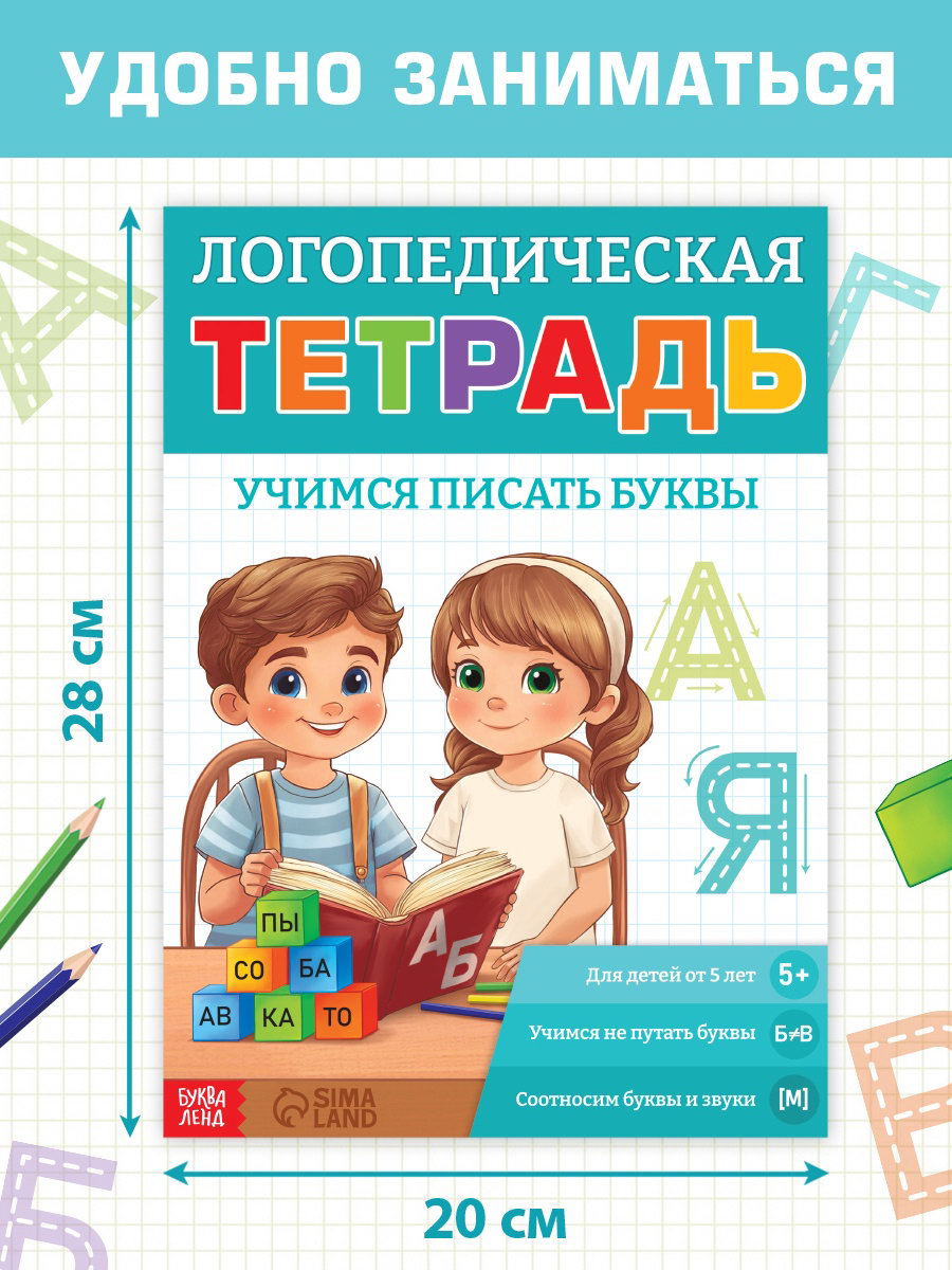 Тренажёр "Логопедическая тетрадь. Учим буквы", 52 стр, 20x0.5x28 см., БУКВА-ЛЕНД, Россия