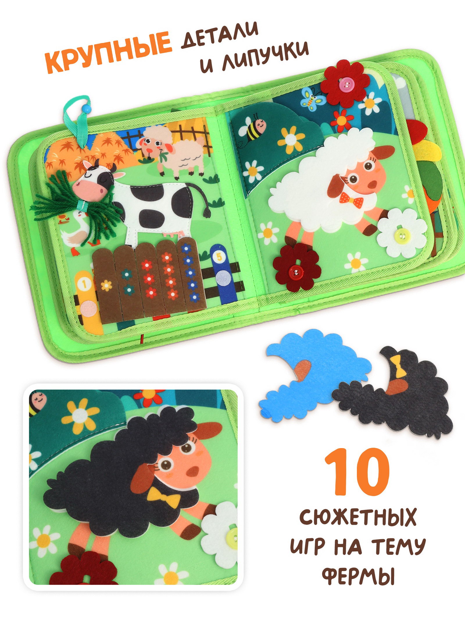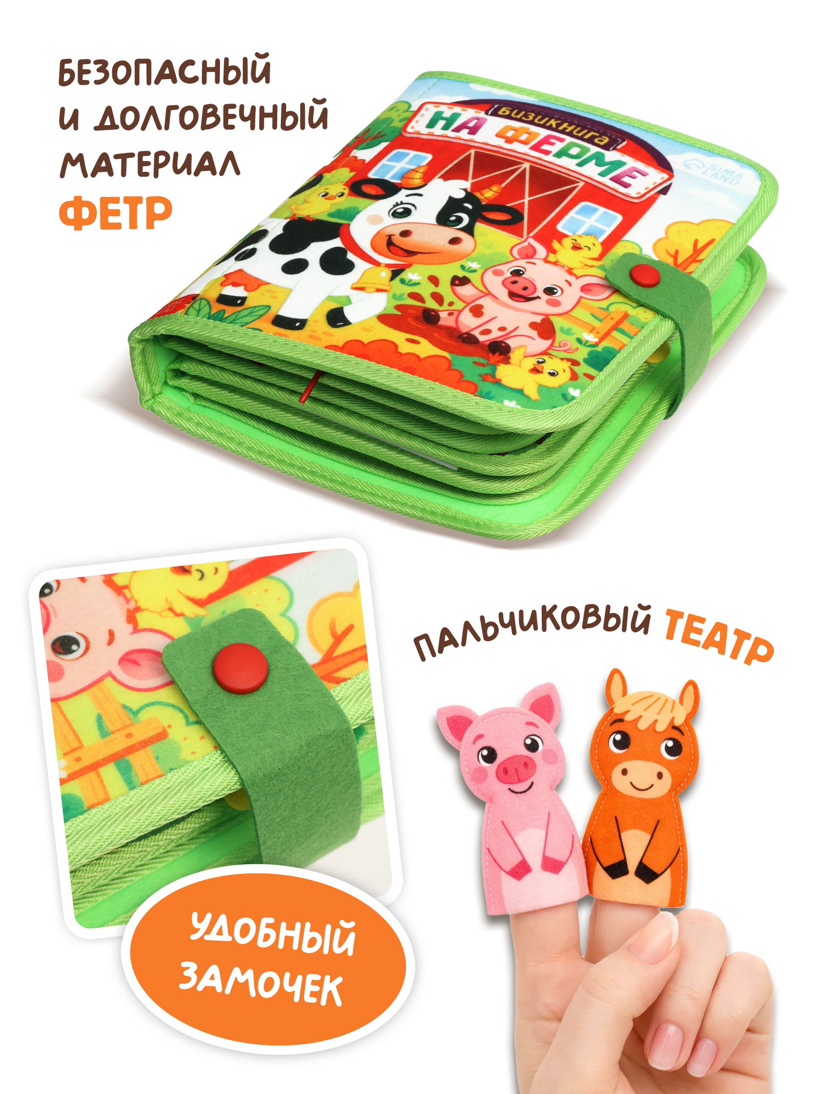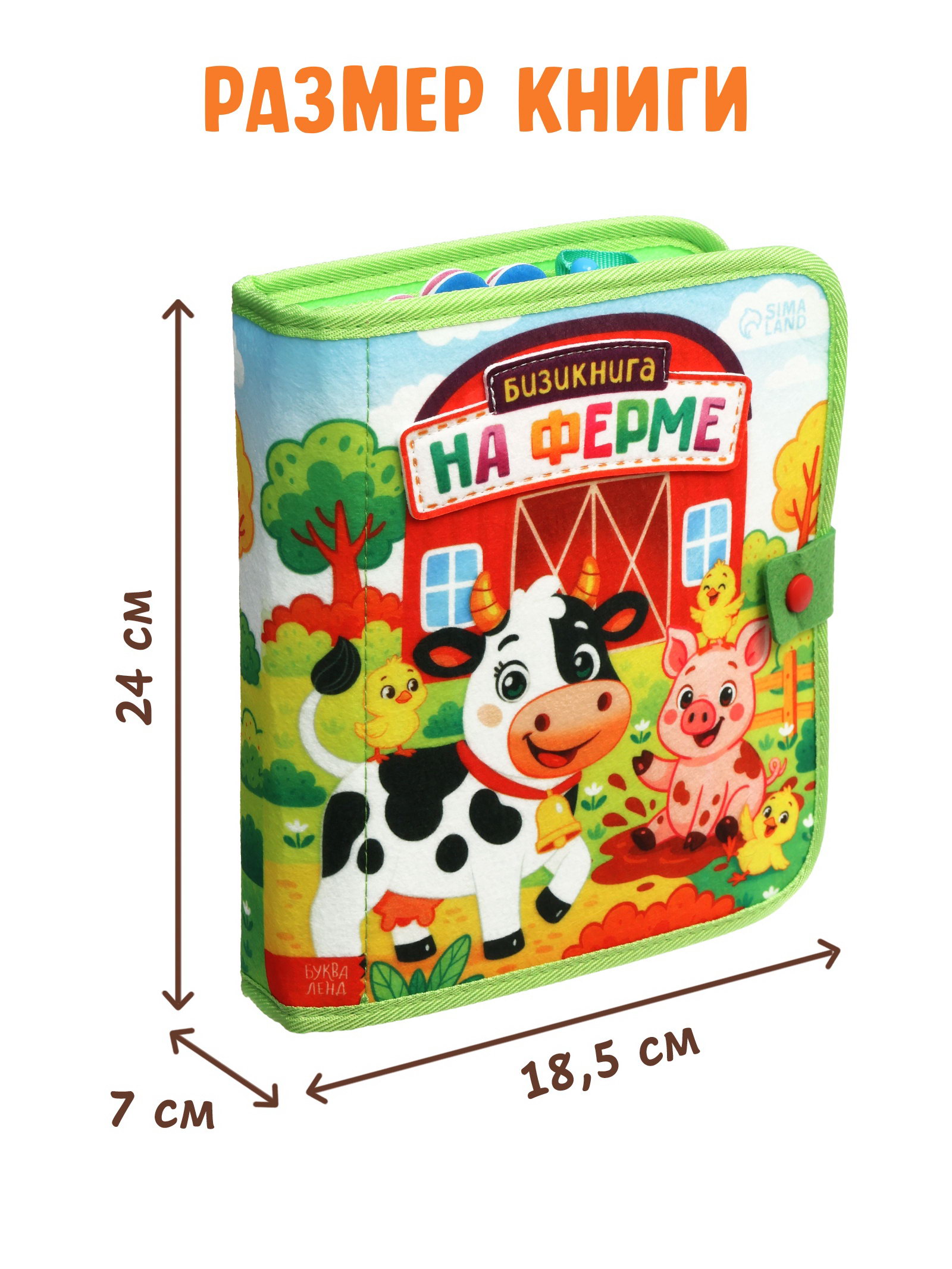 Размер упаковки: 20 x 6 x 24 см. tnved: 9503010000 Язык издания: Русский Тема обучения: Окружающий мир Возраст: От 1 года Тип: С тактильными вставками Набор: Нет Количество страниц: 10 Год издания: 2025 Эта книжка превращает знакомство с фермой в увлекательное приключение. Каждая страница новый сюжет, новая задача и новая причина улыбнуться. Почему родители выбирают эту бизи-книжку: