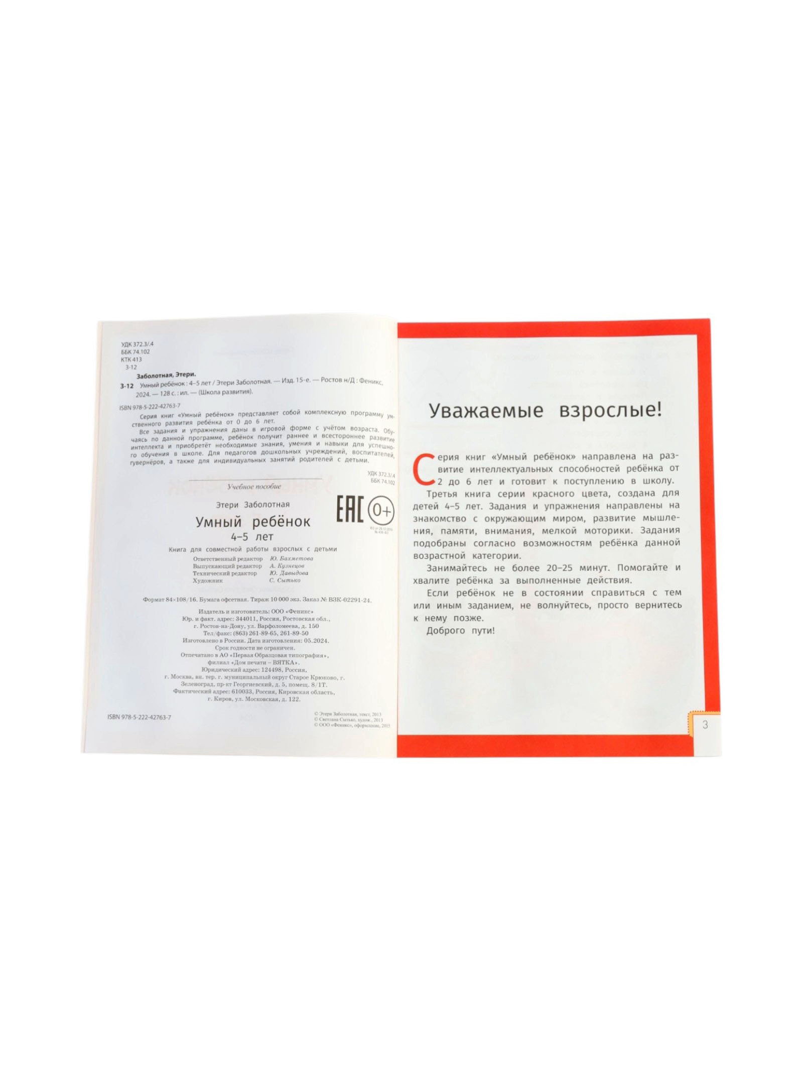 Умный ребенок: 4-5 лет, Заболотная Э., Издательство «Феникс-Премьер», Россия