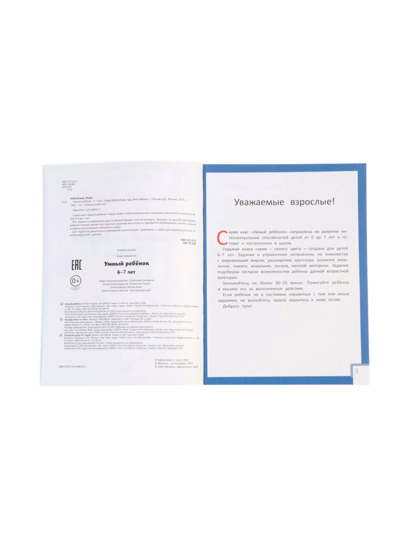 Умный ребенок: 6-7 лет, Заболотная Э., Издательство «Феникс-Премьер», Россия
