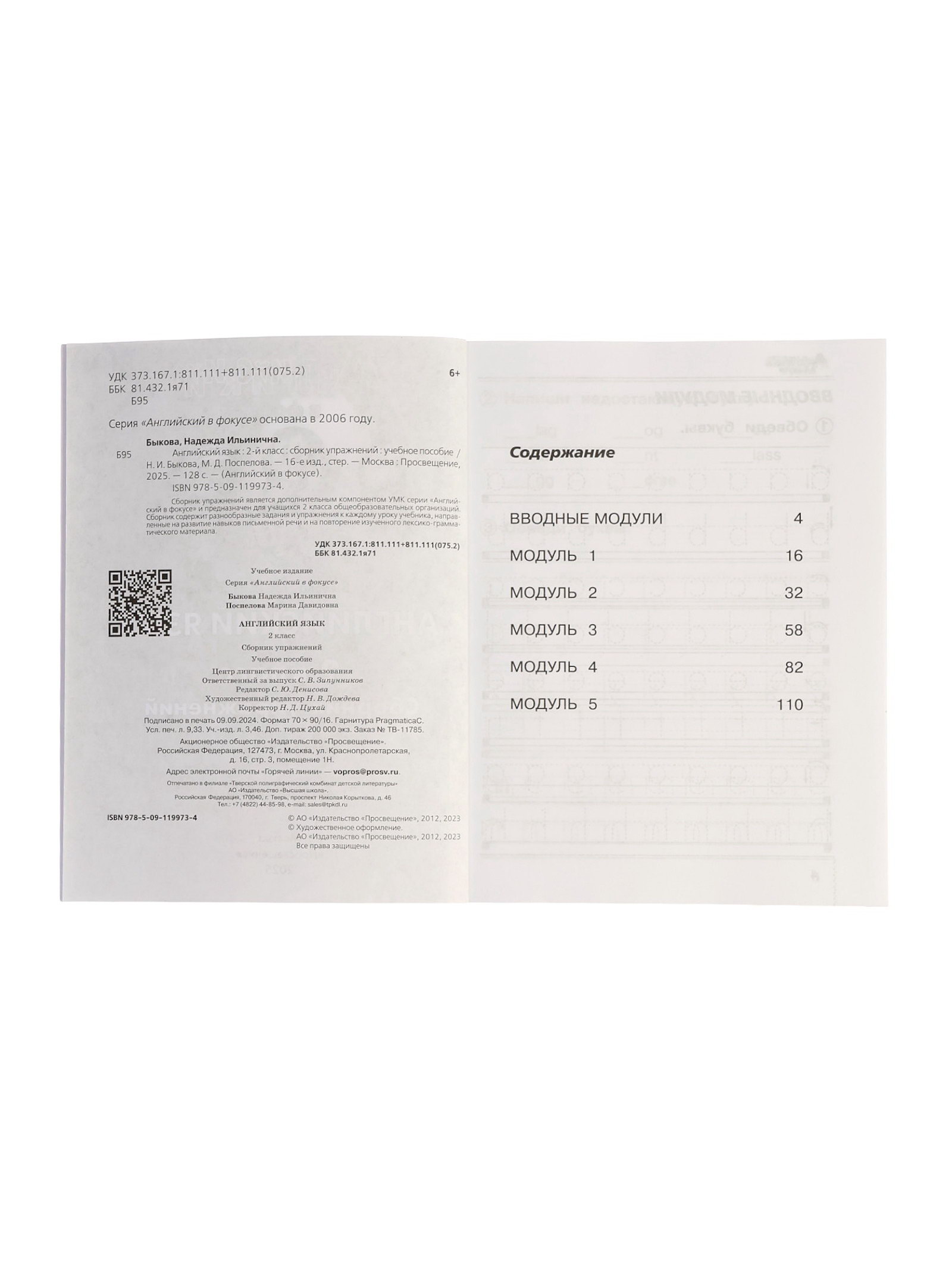 Английский в фокусе, 2 класс, сборник упражнений, Быкова, 2025, Издательство «Просвещение», Россия