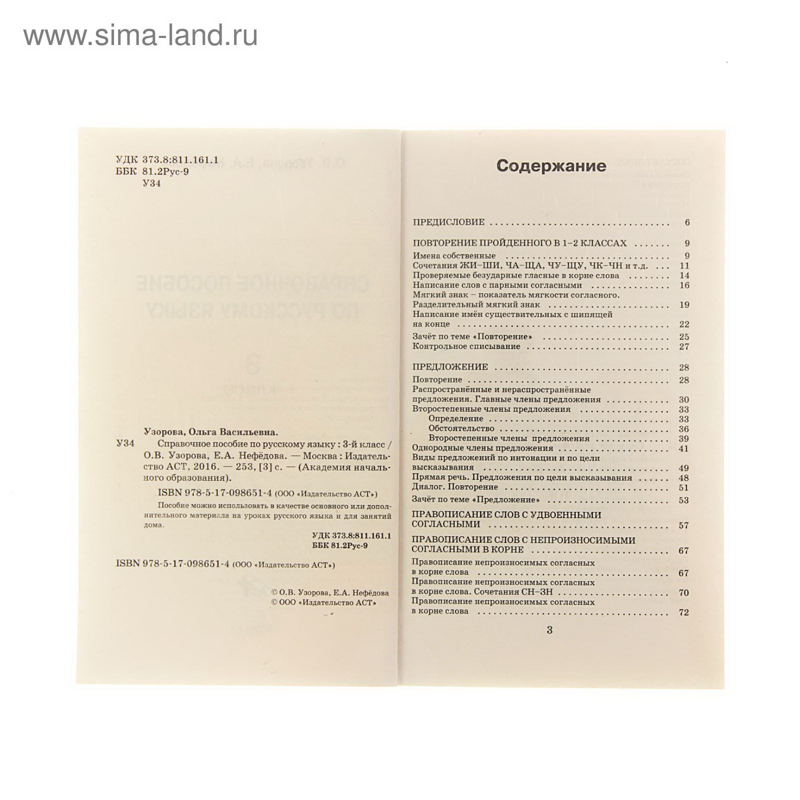 Справочное пособие по русскому языку. 3 класс. Узорова О.В., Нефёдова Е.А., Издательство «АСТ», Россия